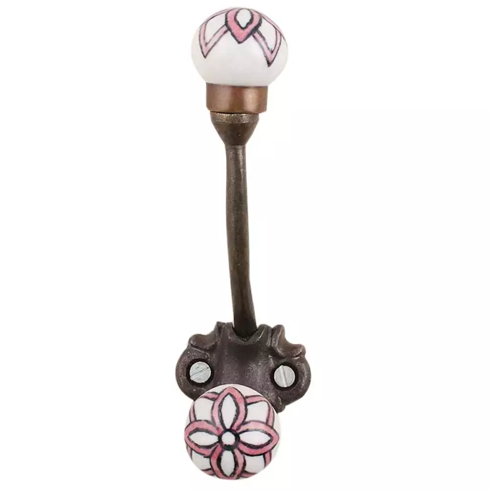 Pink Black Floral Iron Hook-Ehg-74. When Put on Wall or Cabinet It Gives A Sturdy Look. This Hook is Strong Enough to Hold Your Cloths, Keys, Tea Cups, Coffee Mugs, Hand Towels Etc.