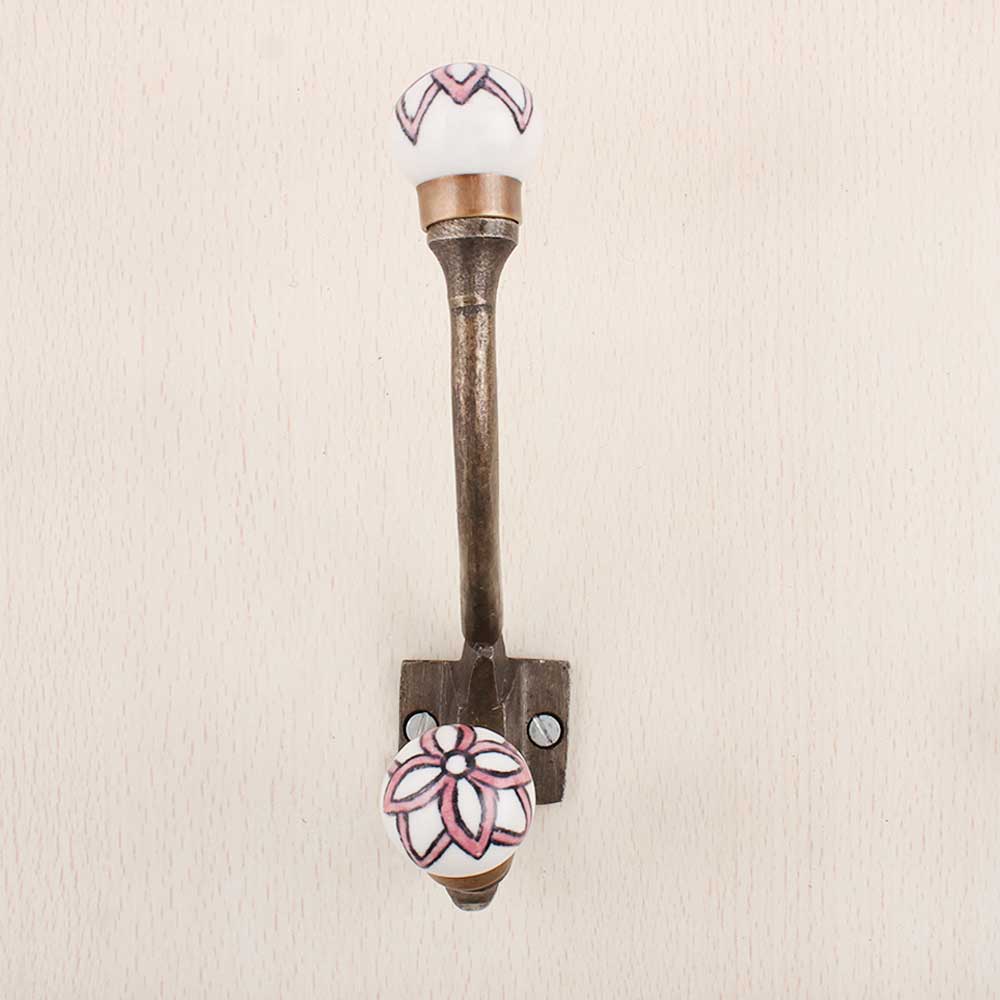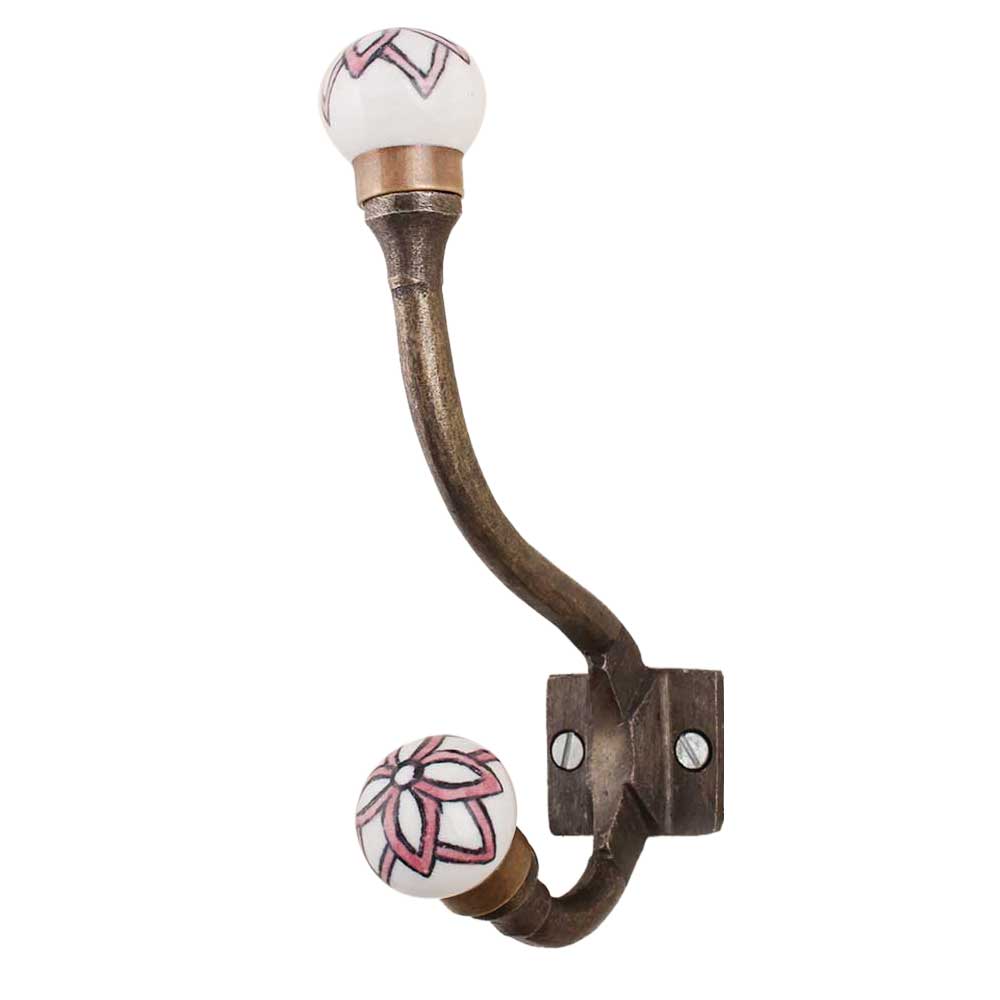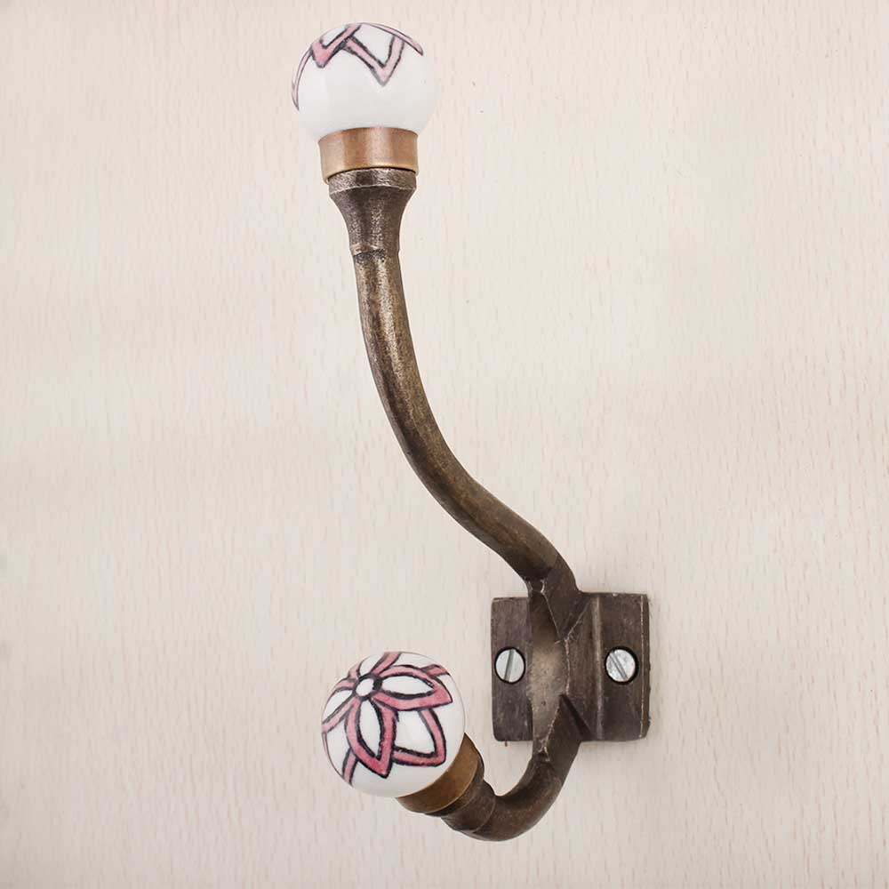 Pink Black Floral Iron Hook-Ehg-74. When Put on Wall or Cabinet It Gives A Sturdy Look. This Hook is Strong Enough to Hold Your Cloths, Keys, Tea Cups, Coffee Mugs, Hand Towels Etc.