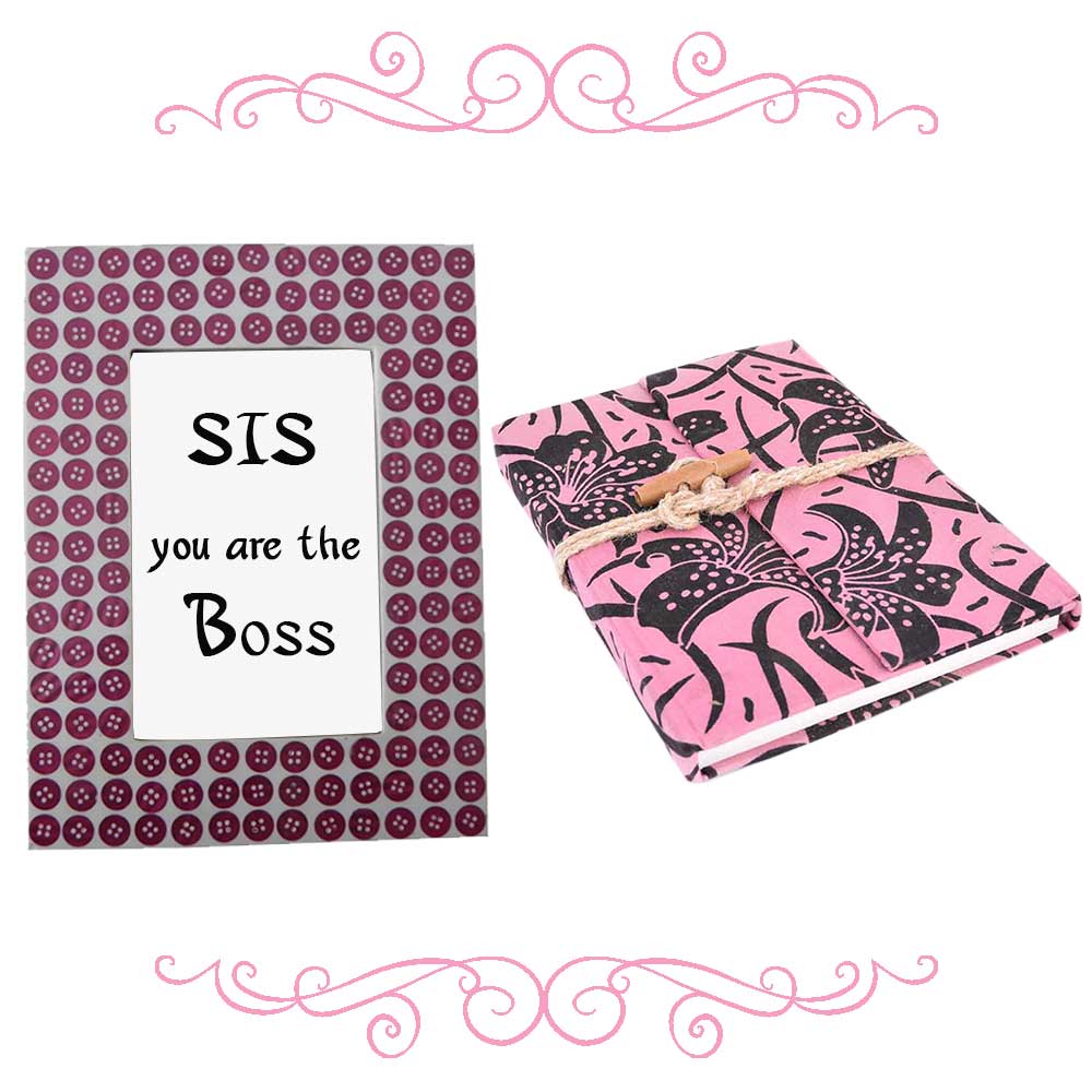 • Pink Button Photoframe With Pink & Black Diary (Combo Pack)
