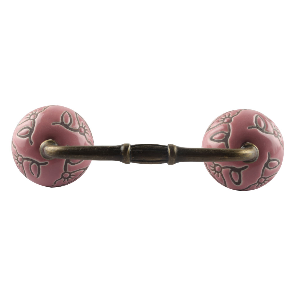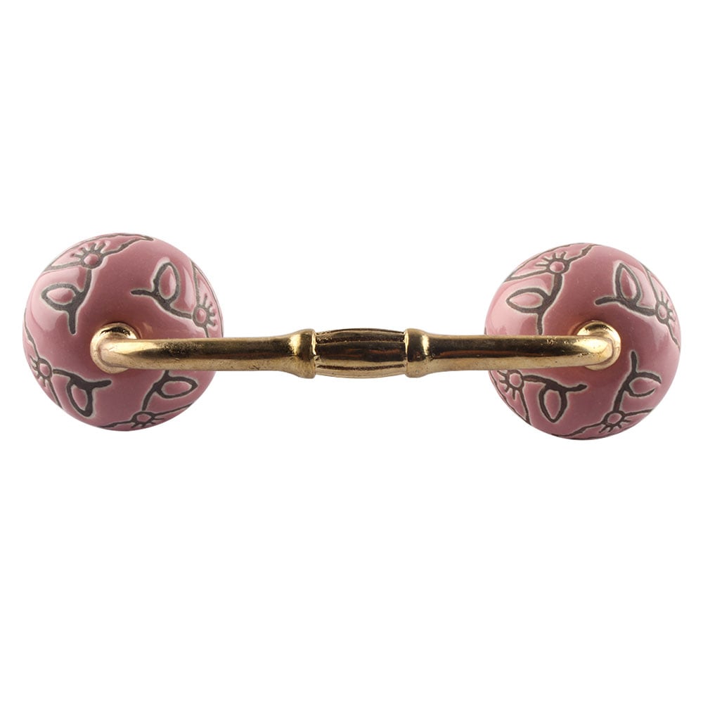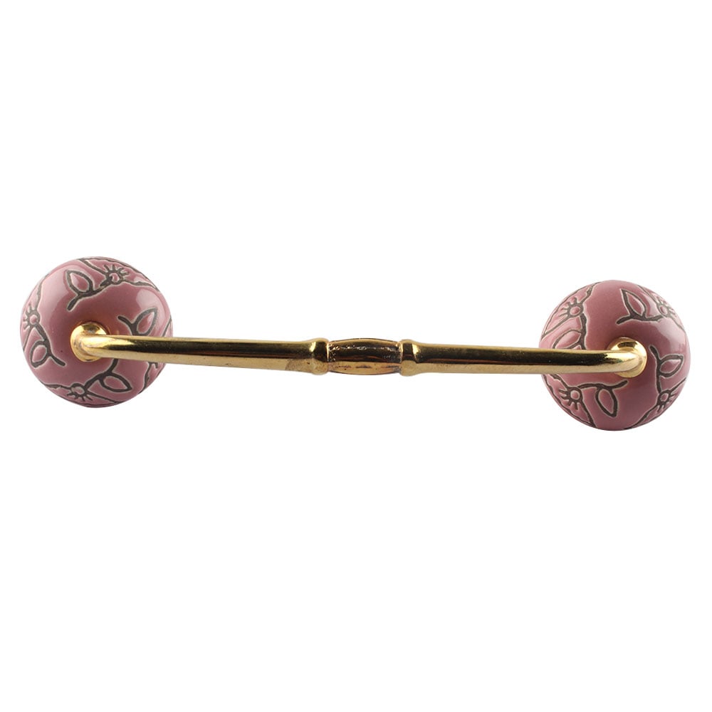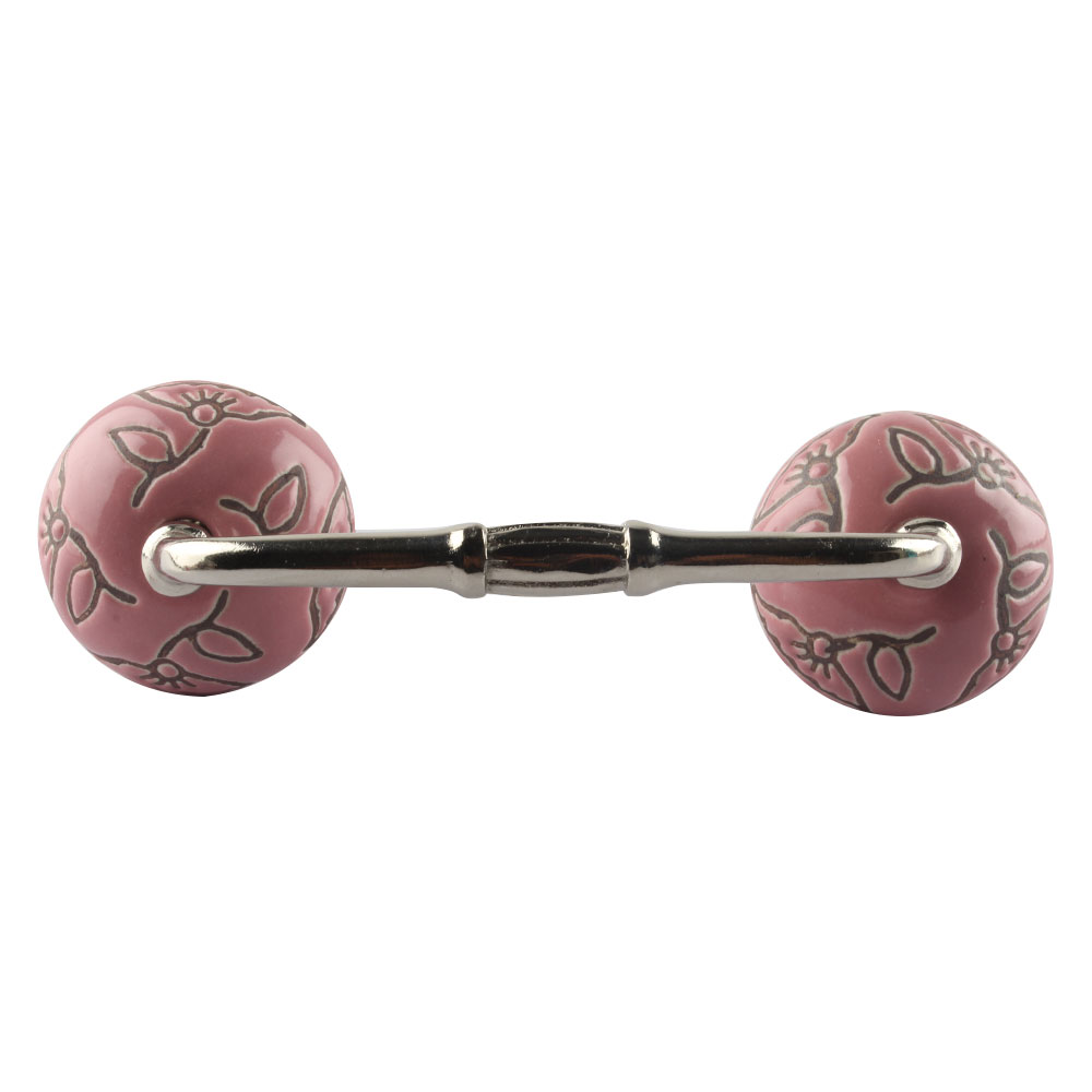 Pink Calla Lily Brown Etched Ceramic Bridge Handle. Ideal for Drawer, Dresser, Cabinet, Wardrobe, Cupboard and Almirah.