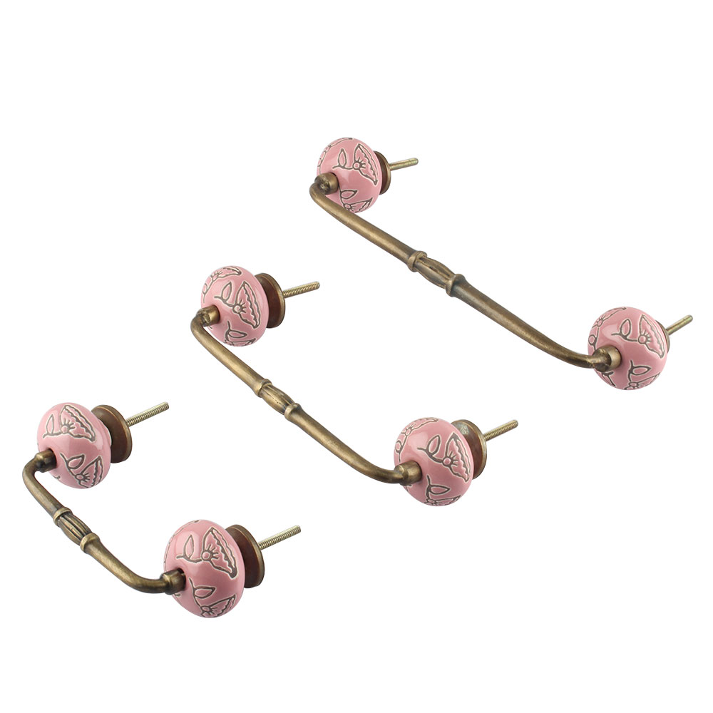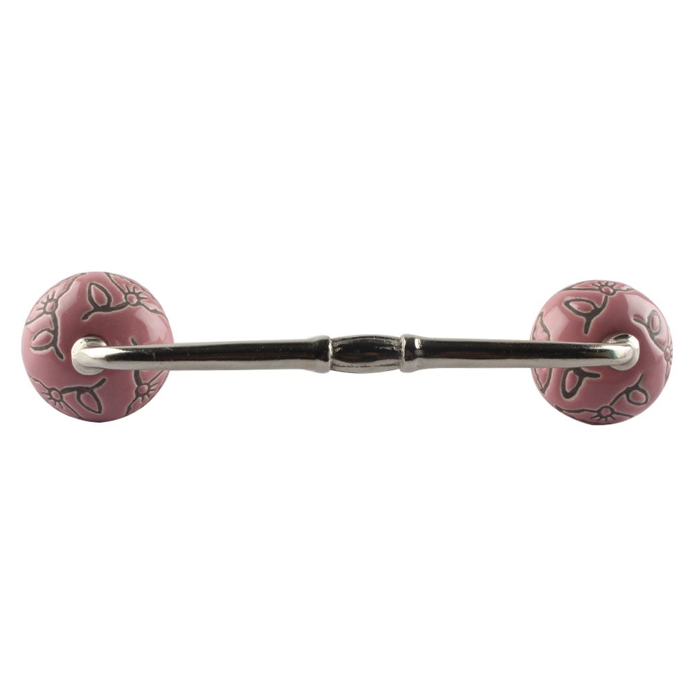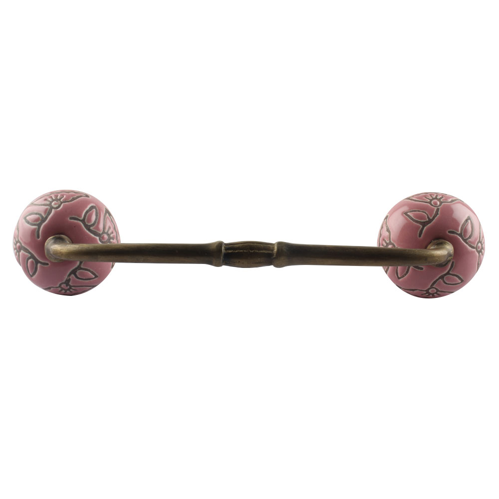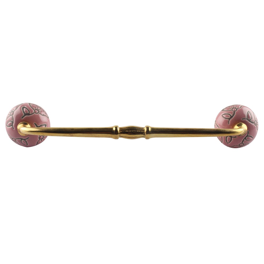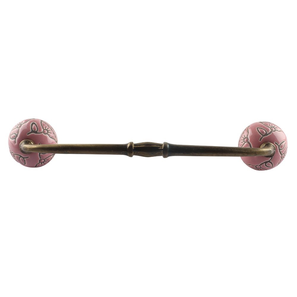 Pink Calla Lily Brown Etched Ceramic Bridge Handle. Ideal for Drawer, Dresser, Cabinet, Wardrobe, Cupboard and Almirah.