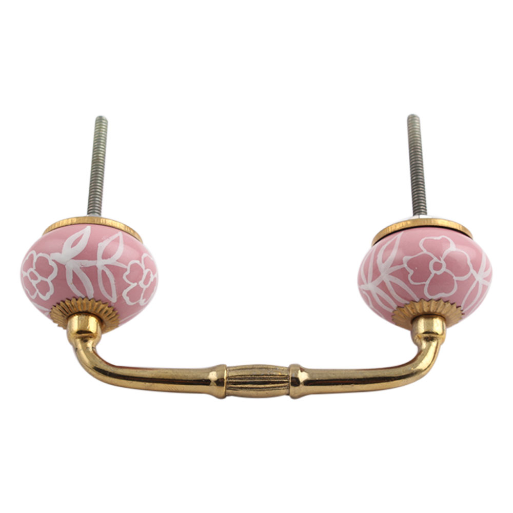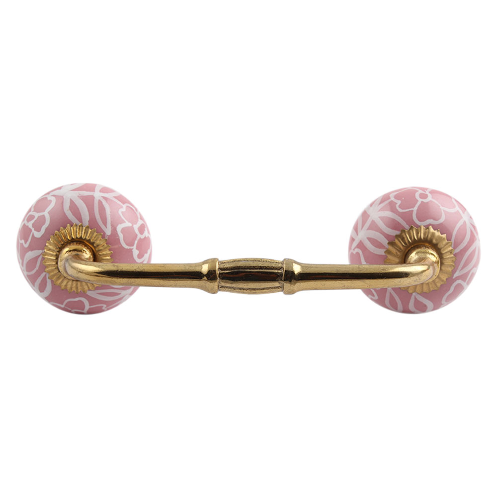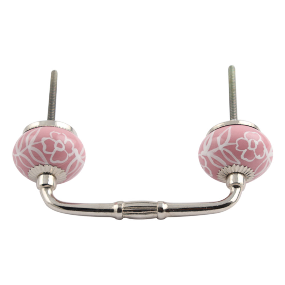 Pink Ceramic Bridge Dresser Handle. Ideal for Drawer, Dresser, Cabinet, Wardrobe, Cupboard and Almirah.