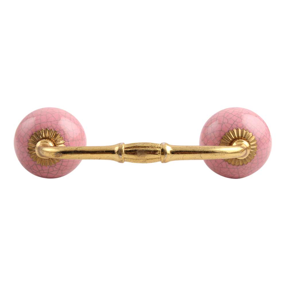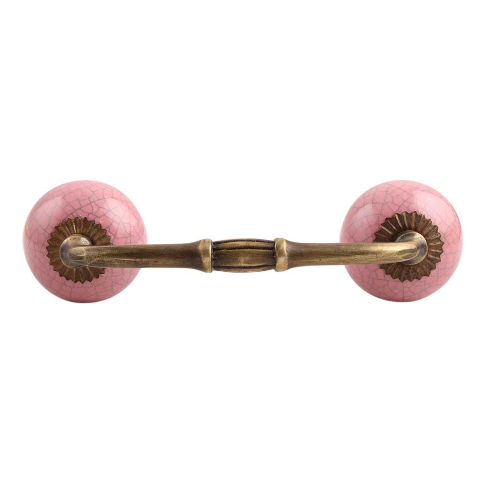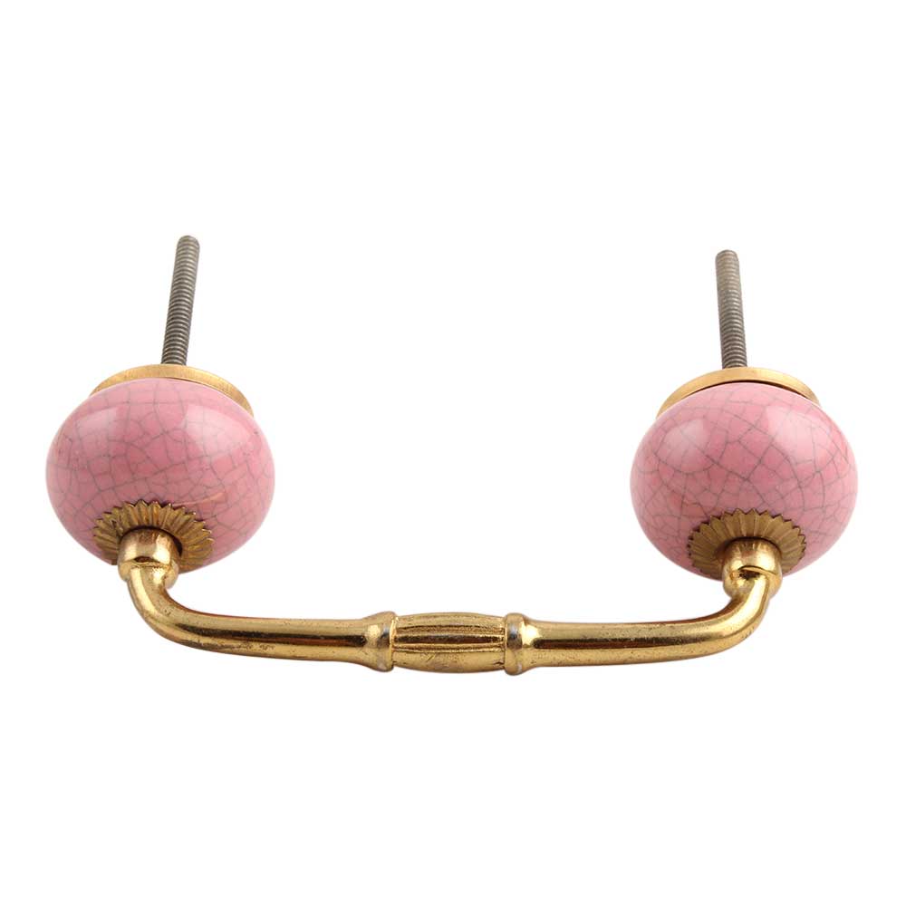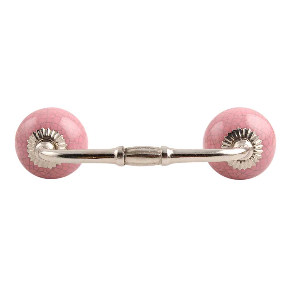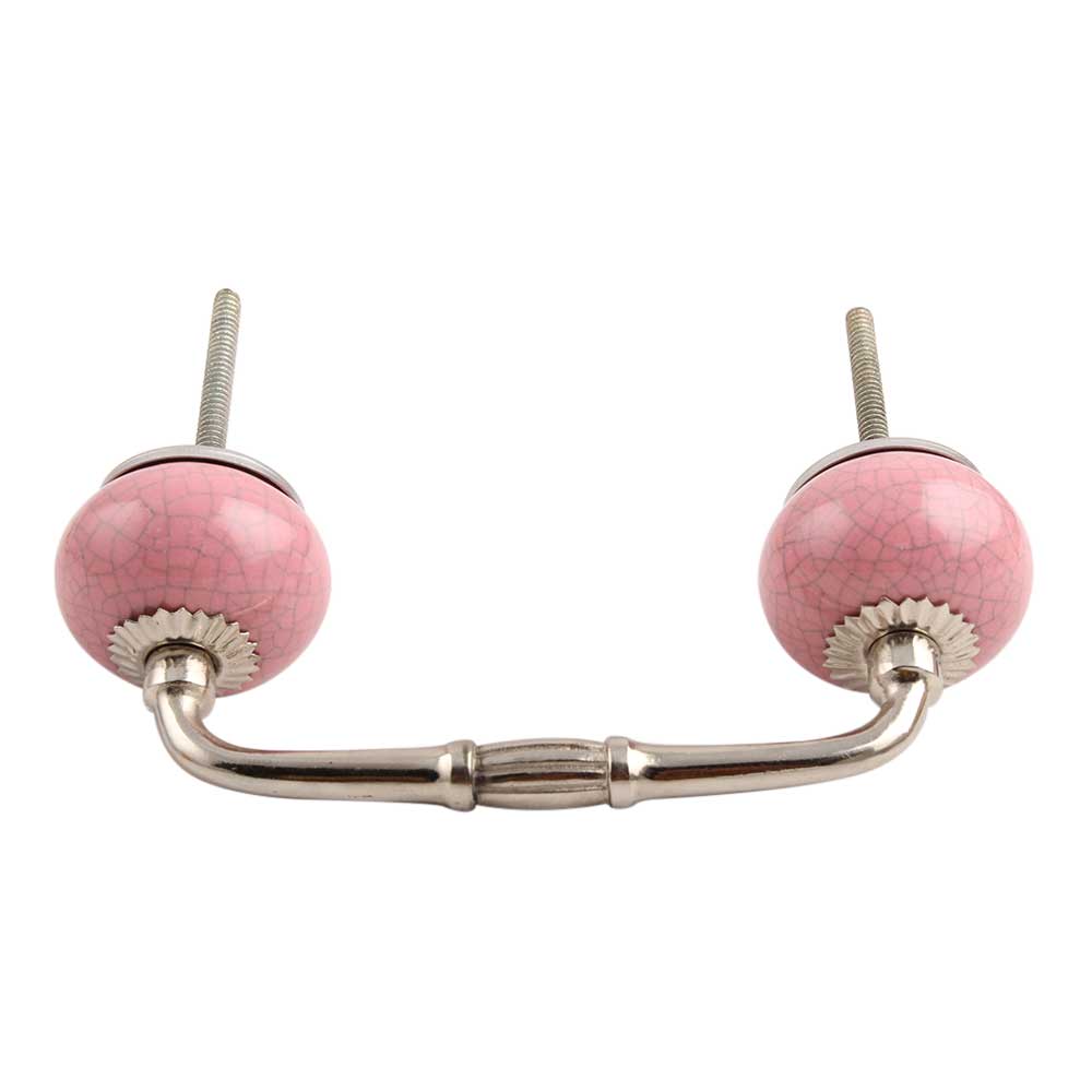 Pink Crackle Ceramic Bridge Handle. Ideal for Drawer, Dresser, Cabinet, Wardrobe, Cupboard and Almirah.