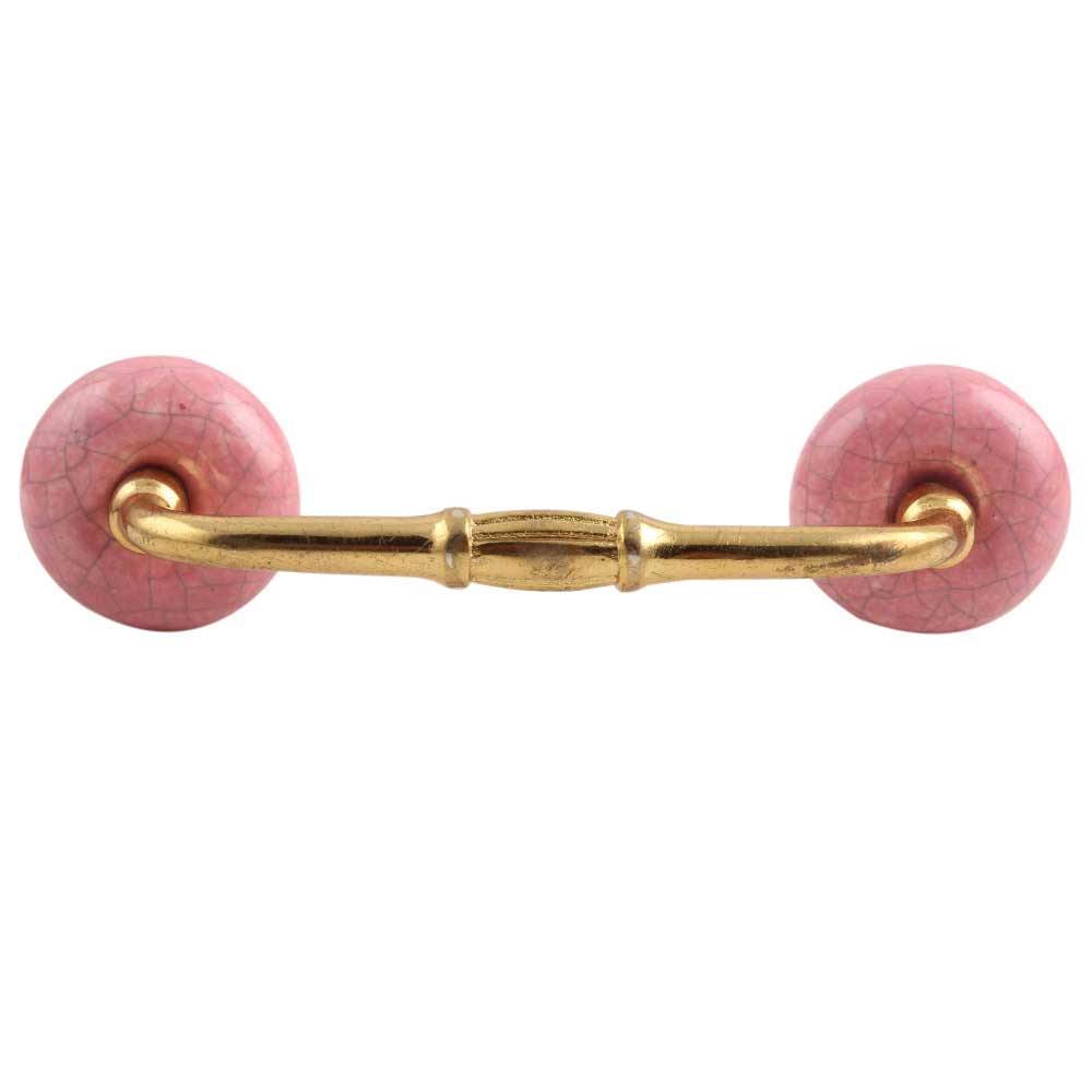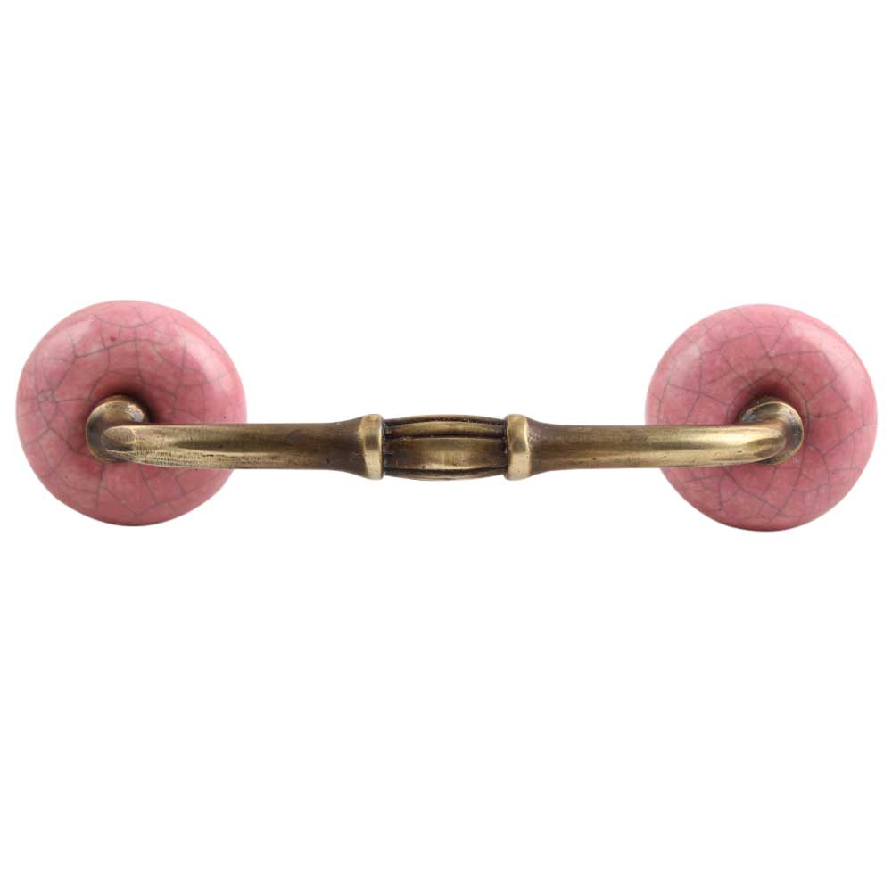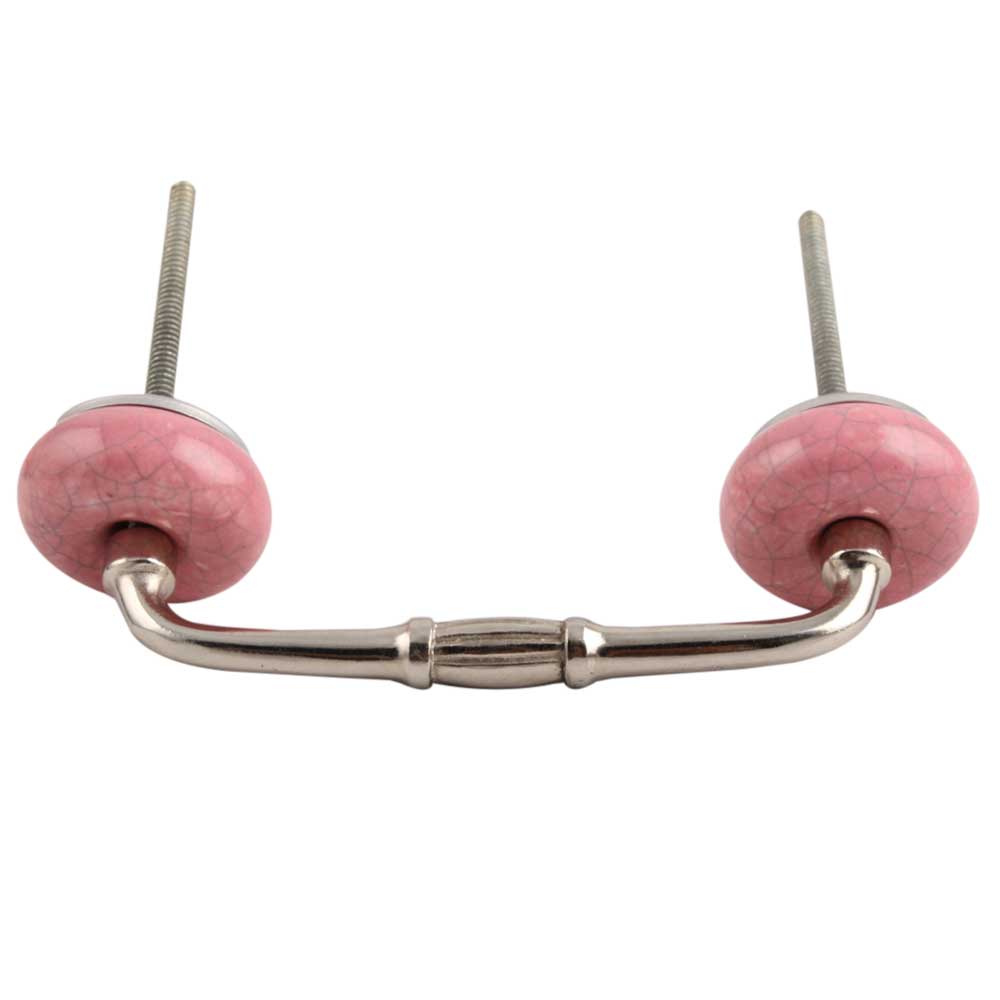 Pink Crackle Ceramic Bridge Handle. Ideal for Drawer, Dresser, Cabinet, Wardrobe, Cupboard and Almirah etc.