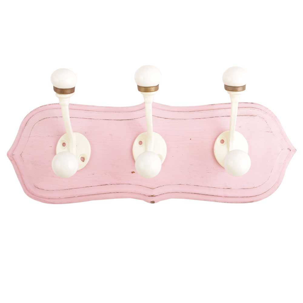 Pink Cream Double Loop Ceramic Iron Wooden Hooks. A Perfect Complement to the Soft Tone of the Wood are these White Traditional Hat & Coat Hook Made of Genuine Porcelain and Brass. It can be use to Hang Jewellery, Leashes, Towels, Scarves, Light Weight Sweaters, Caps Etc.
