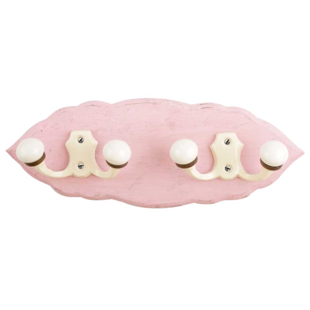 Pink Cream Double Loop Ceramic Iron Wooden Hooks. A Perfect Complement to the Soft Tone of the Wood are these White Traditional Hat & Coat Hook Made of Genuine Porcelain and Brass. It can be use to Hang Jewellery, Leashes, Towels, Scarves, Light Weight Sweaters, Caps Etc.
