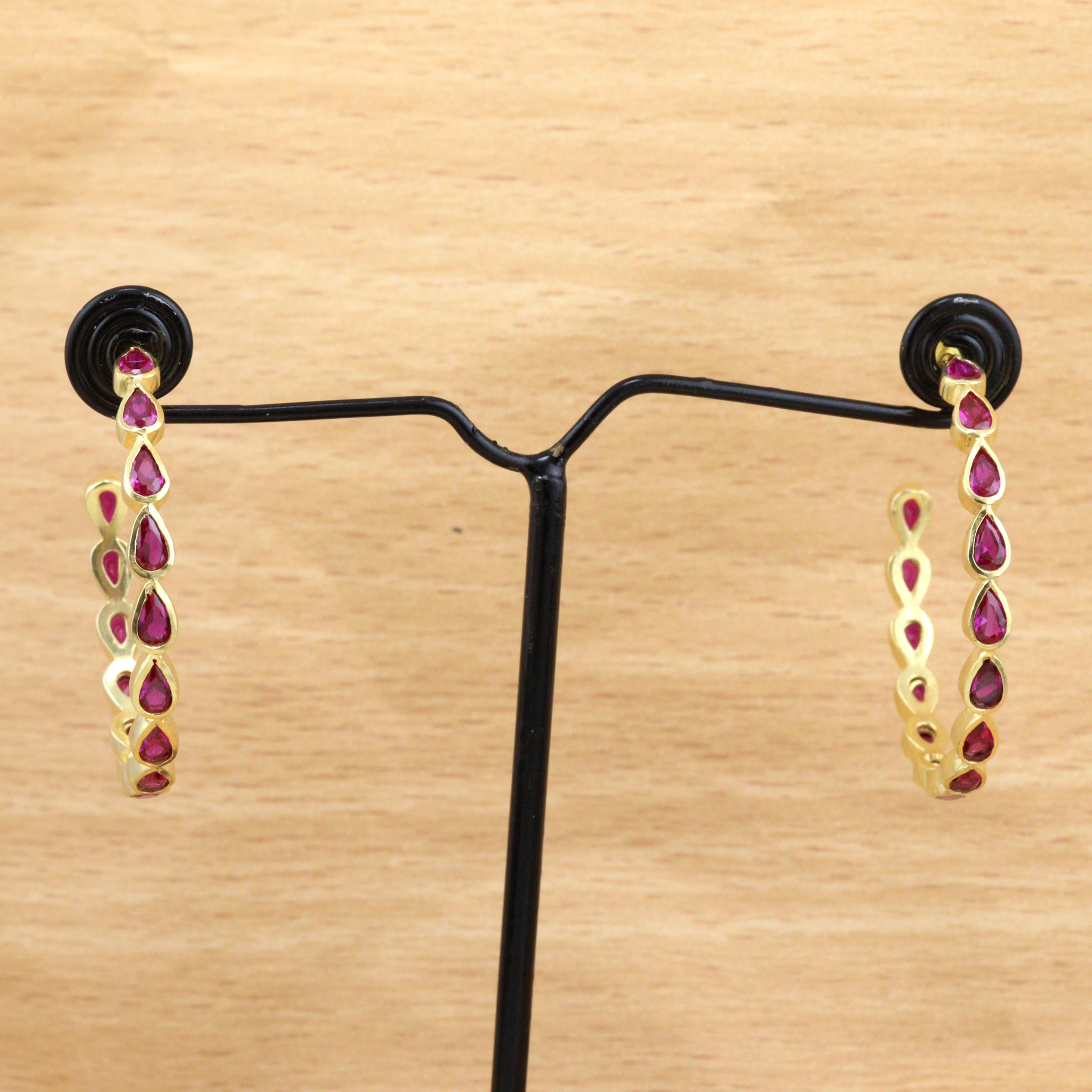 Pink Cz circle hoop earring, Brass with 22k gold plated, Gifts jewelry