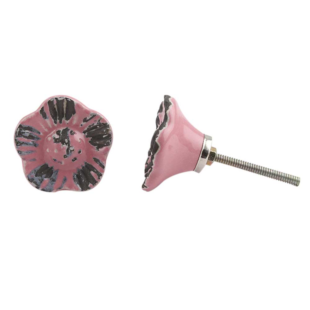Pink Daffodils Ceramic Etched Cupboard Knob