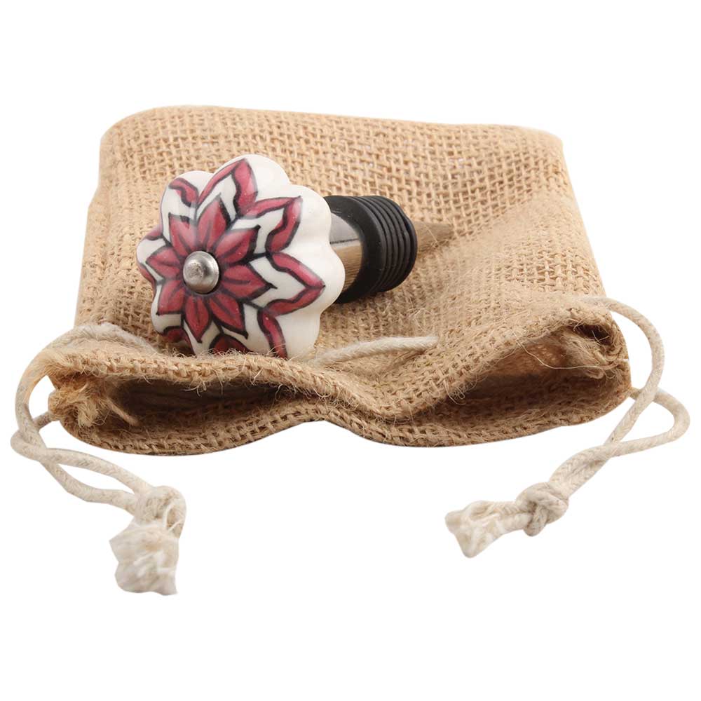 Pink Dahlia Medium Ceramic Wine Stopper.zinc alloy wine bottle stopper with attractive Jute Bag Packaging.