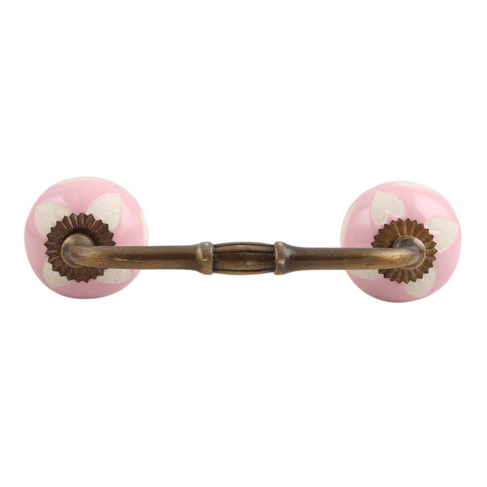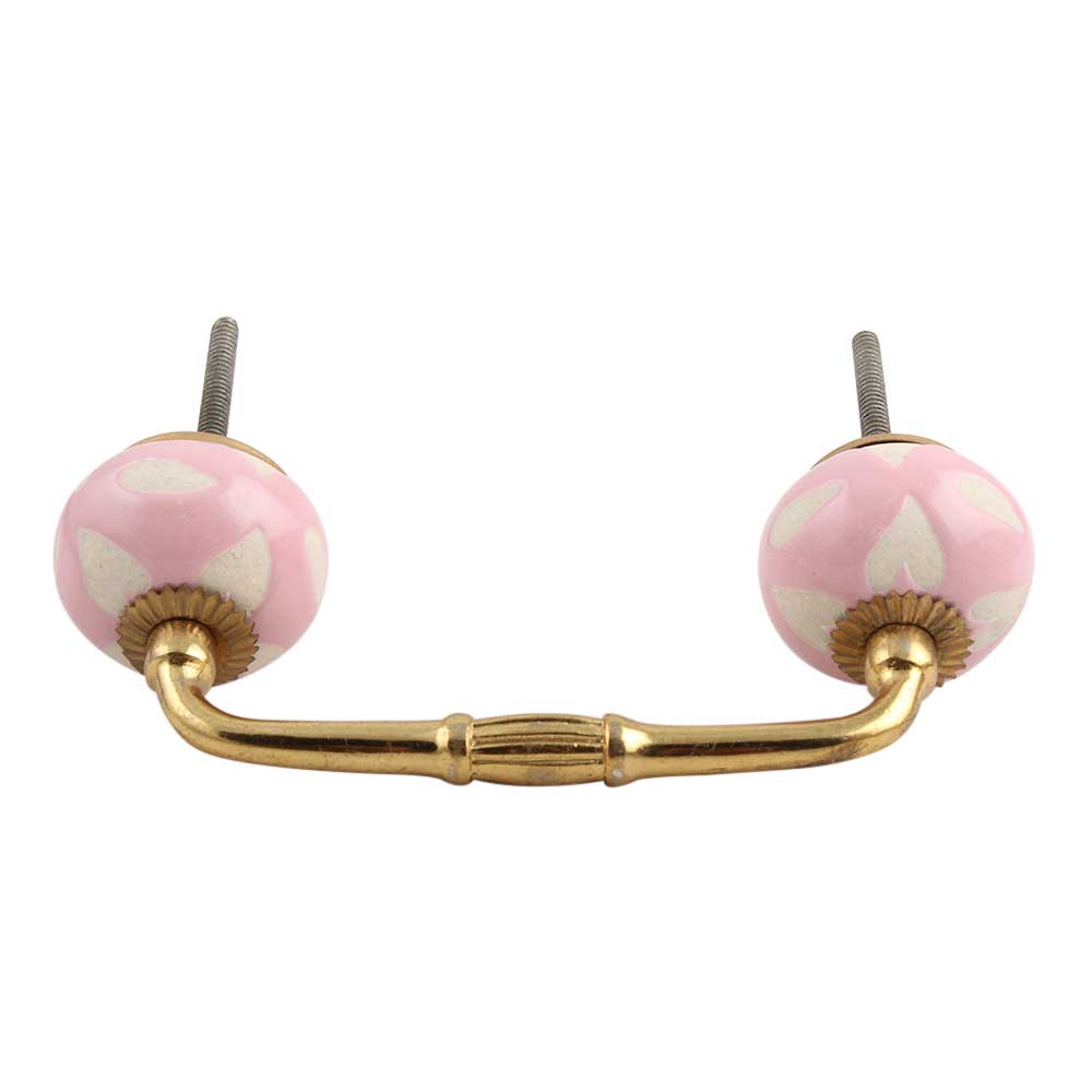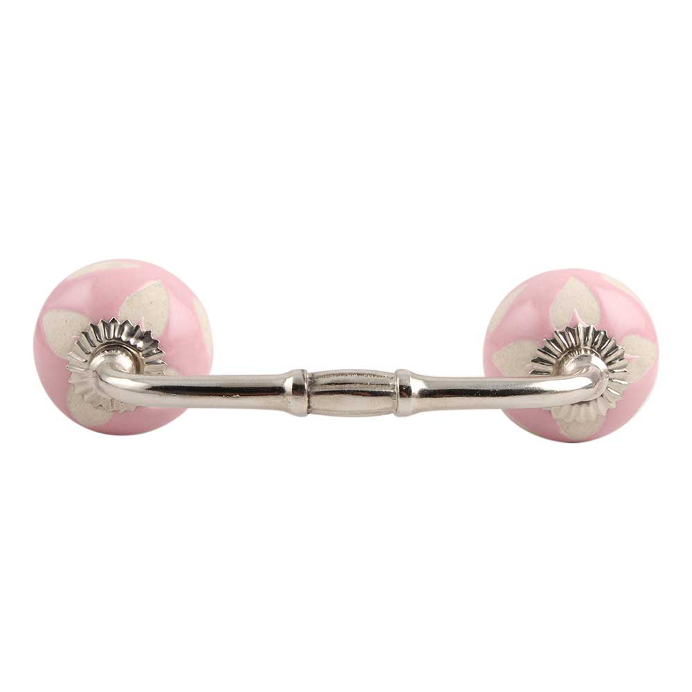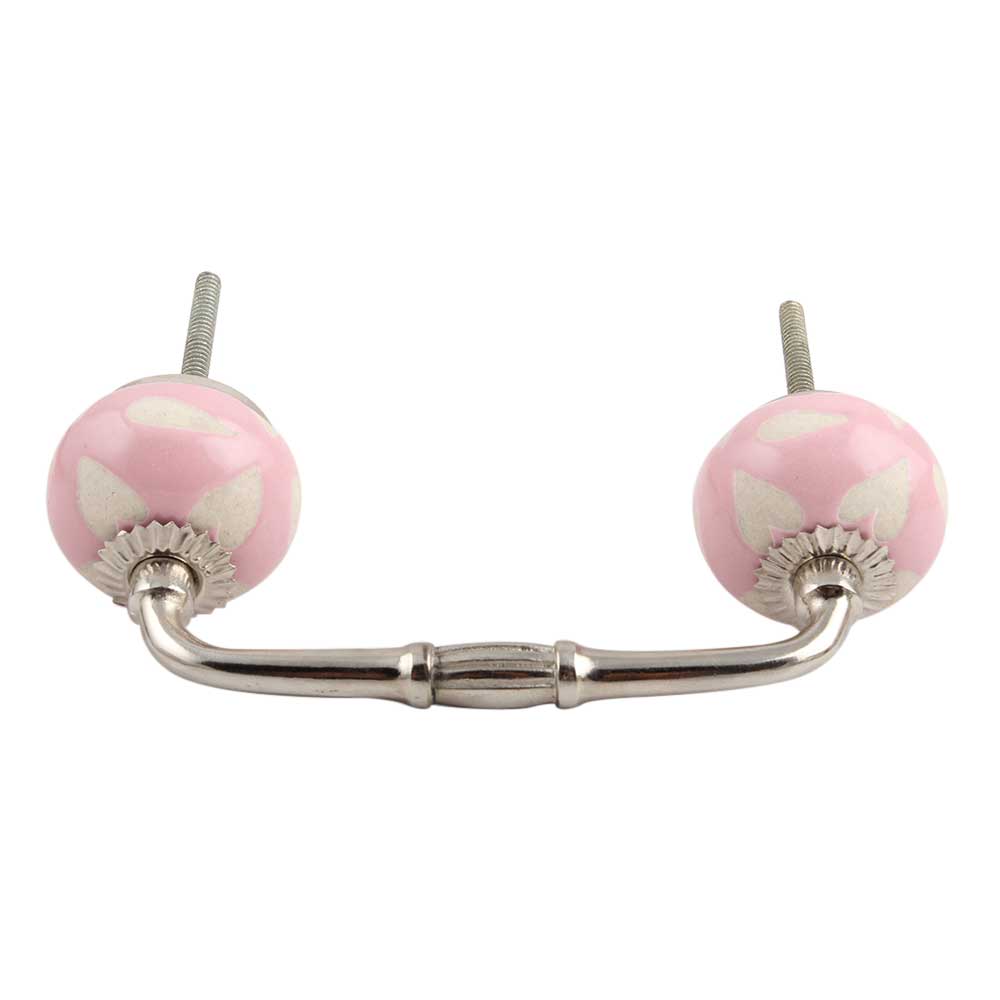 Pink Etched Ceramic Bridge Handle. Ideal for Drawer, Dresser, Cabinet, Wardrobe, Cupboard and Almirah.