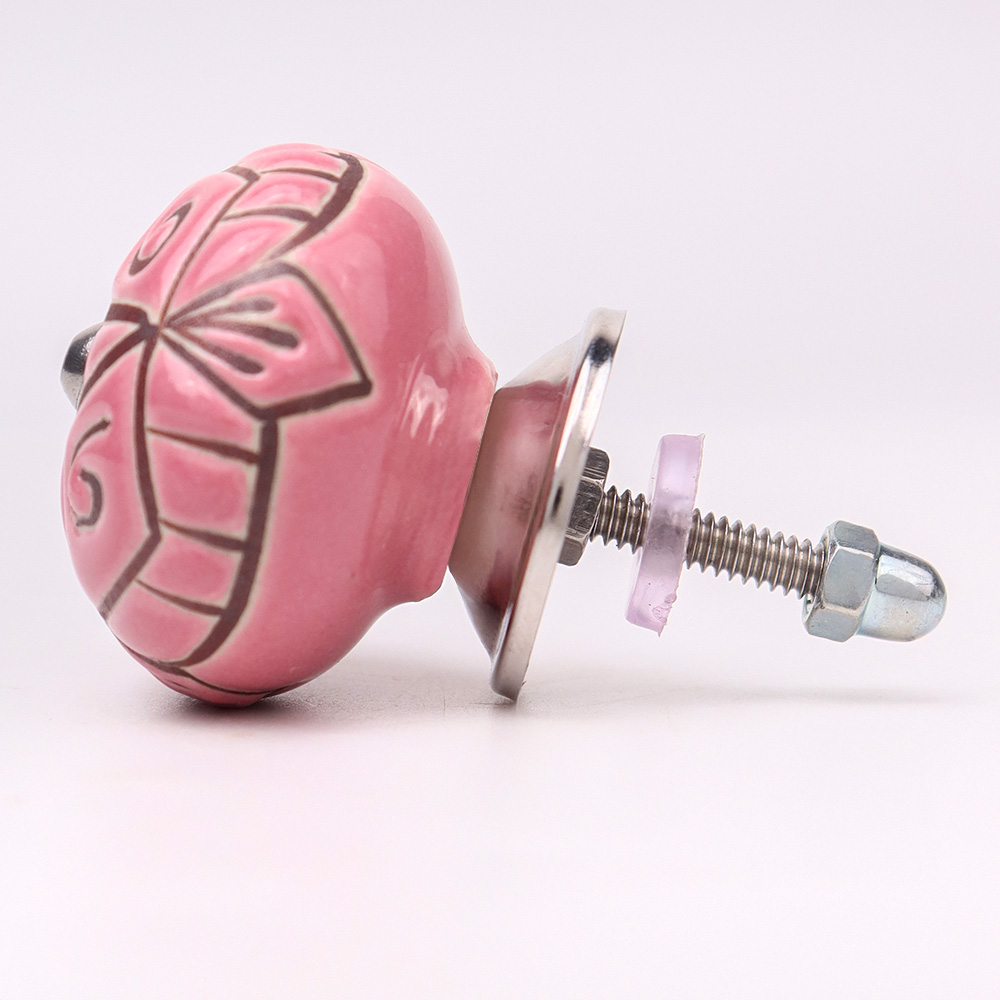 Pink Etched Ceramic Floral Cabinet Knob Online