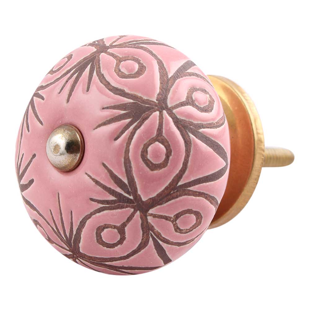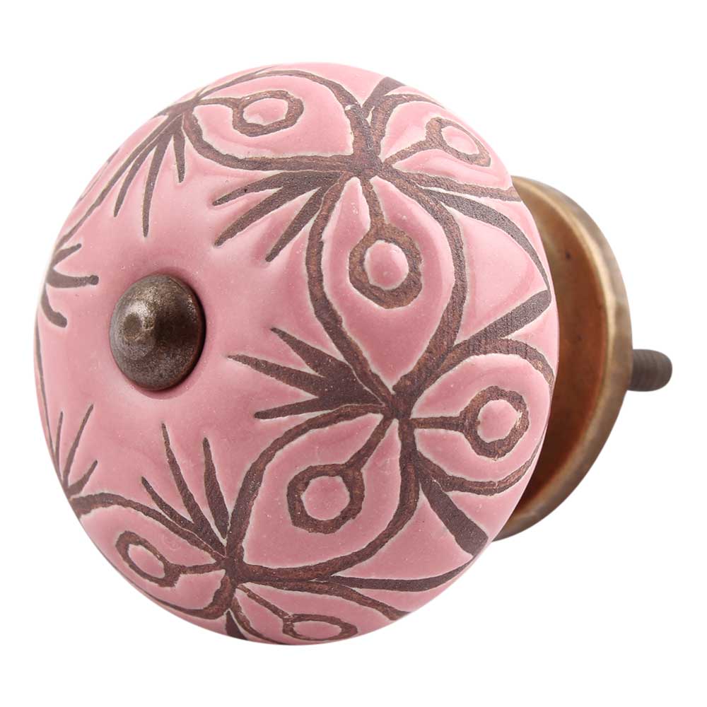 Pink Etched Ceramic Floral Dresser Knob Online