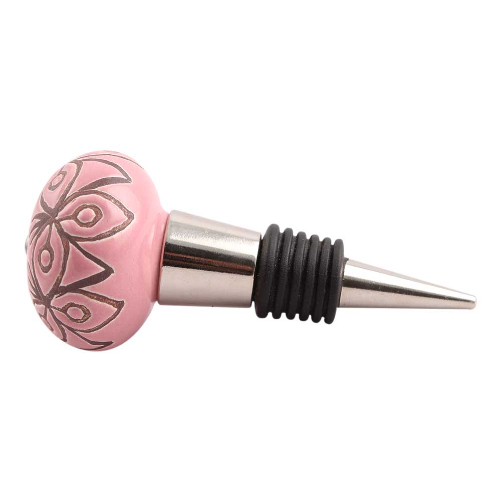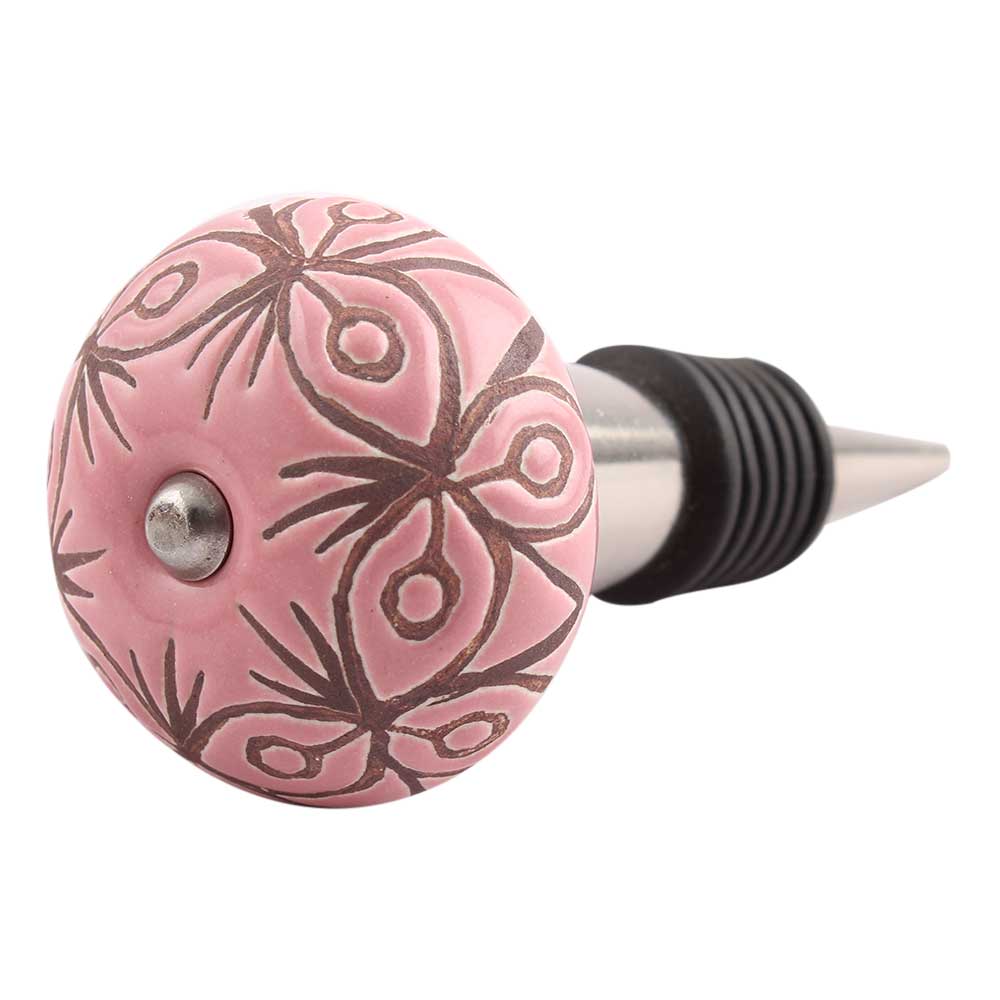 Pink Etched Ceramic Floral Wine Stopper.zinc alloy wine bottle stopper with attractive Jute Bag Packaging.