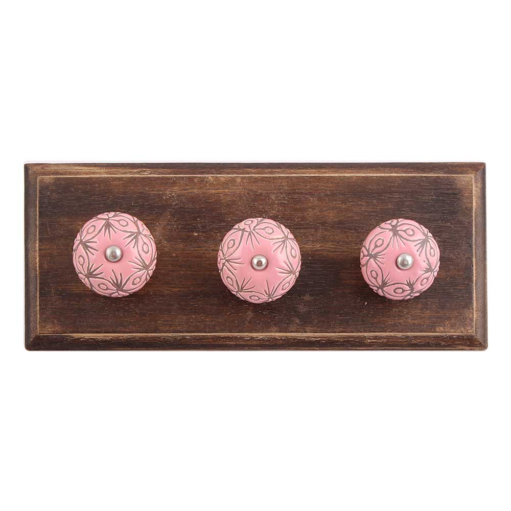 Pink Etched Ceramic Wooden Hook. A Perfect Complement to the Soft Tone of the Wood are these White Traditional Hat & Coat Hook Made of Genuine Porcelain and Brass. It can be use to Hang Jewellery, Leashes, Towels, Scarves, Light Weight Sweaters, Caps Etc.
