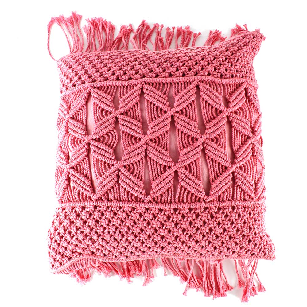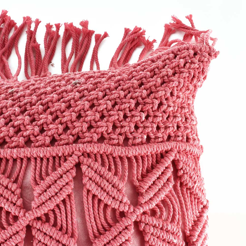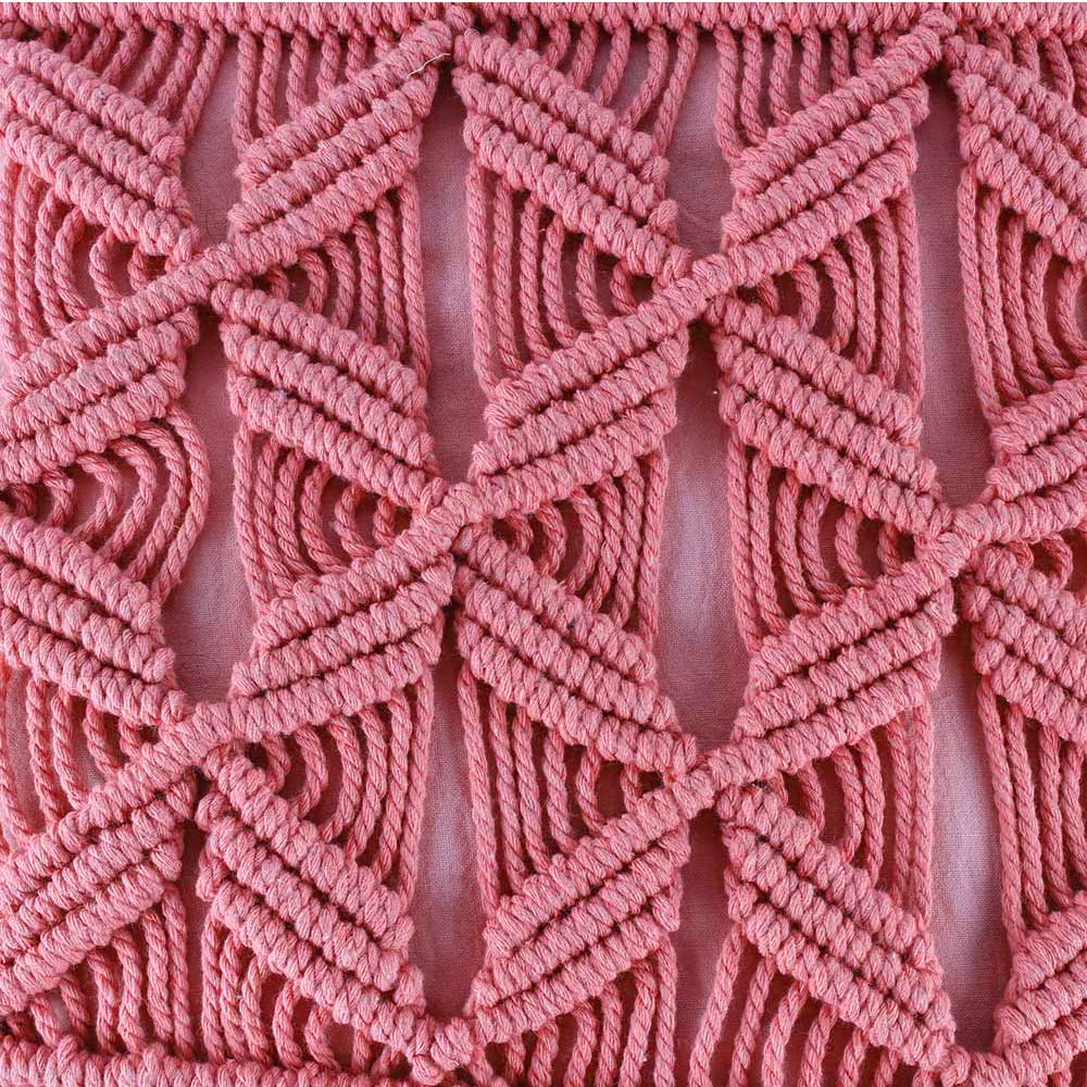 The pink Bohemian cottage style cable knitted throw pillow cover with hand knotted macrame adds an attractive and vibrant touch to your home decor. It serves not only as an ornamental object, but also as a statement of contemporary beauty that honors the traditions of traditional macrame artistry.