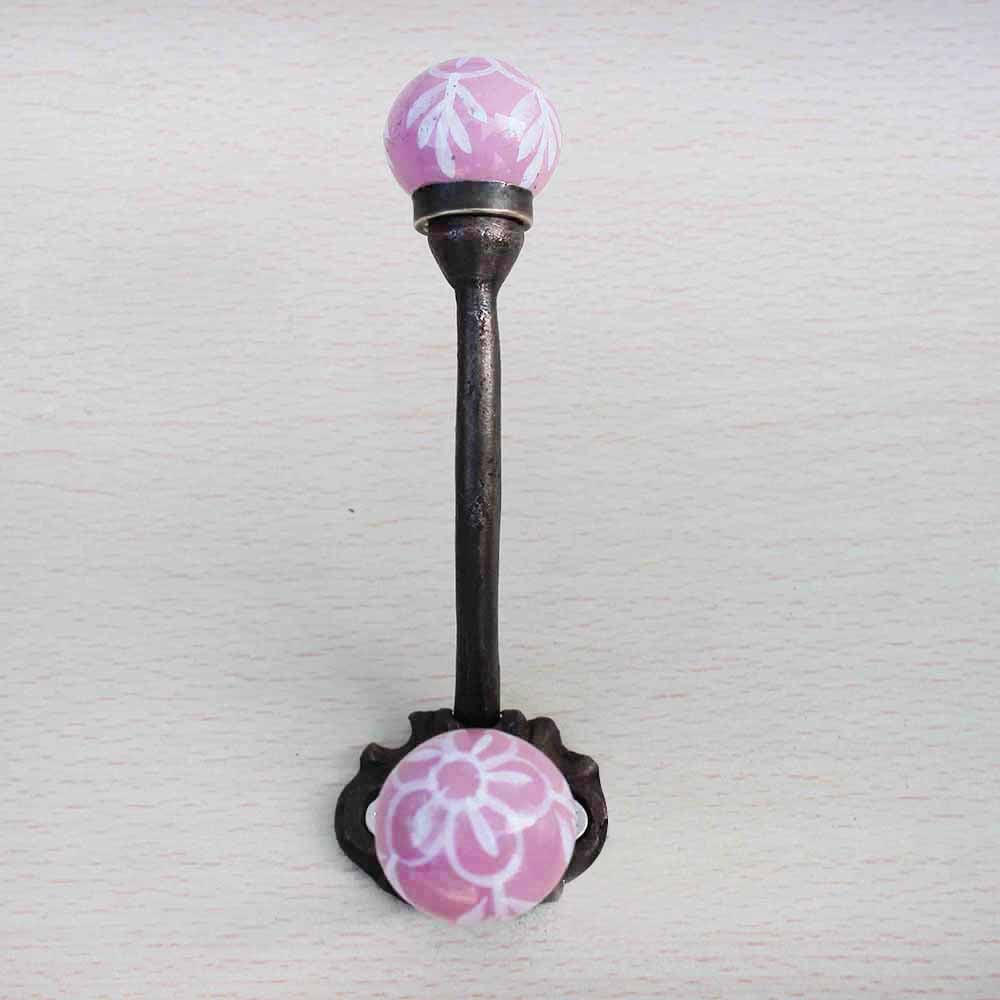 Pink Floral Iron Hook-EHG-42.when put on wall or cabinet it gives a sturdy look. This hook is strong enough to hold your cloths, keys, tea cups, coffee mugs, hand towels etc.