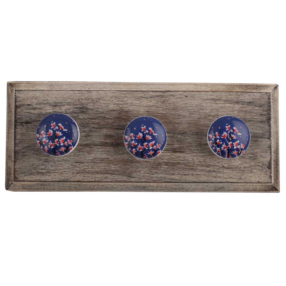 Pink Flower Ceramic Flat Wooden Hook. A Perfect Complement to the Soft Tone of the Wood are these White Traditional Hat & Coat Hook Made of Genuine Porcelain and Brass. It can be use to Hang Jewellery, Leashes, Towels, Scarves, Light Weight Sweaters, Caps Etc.