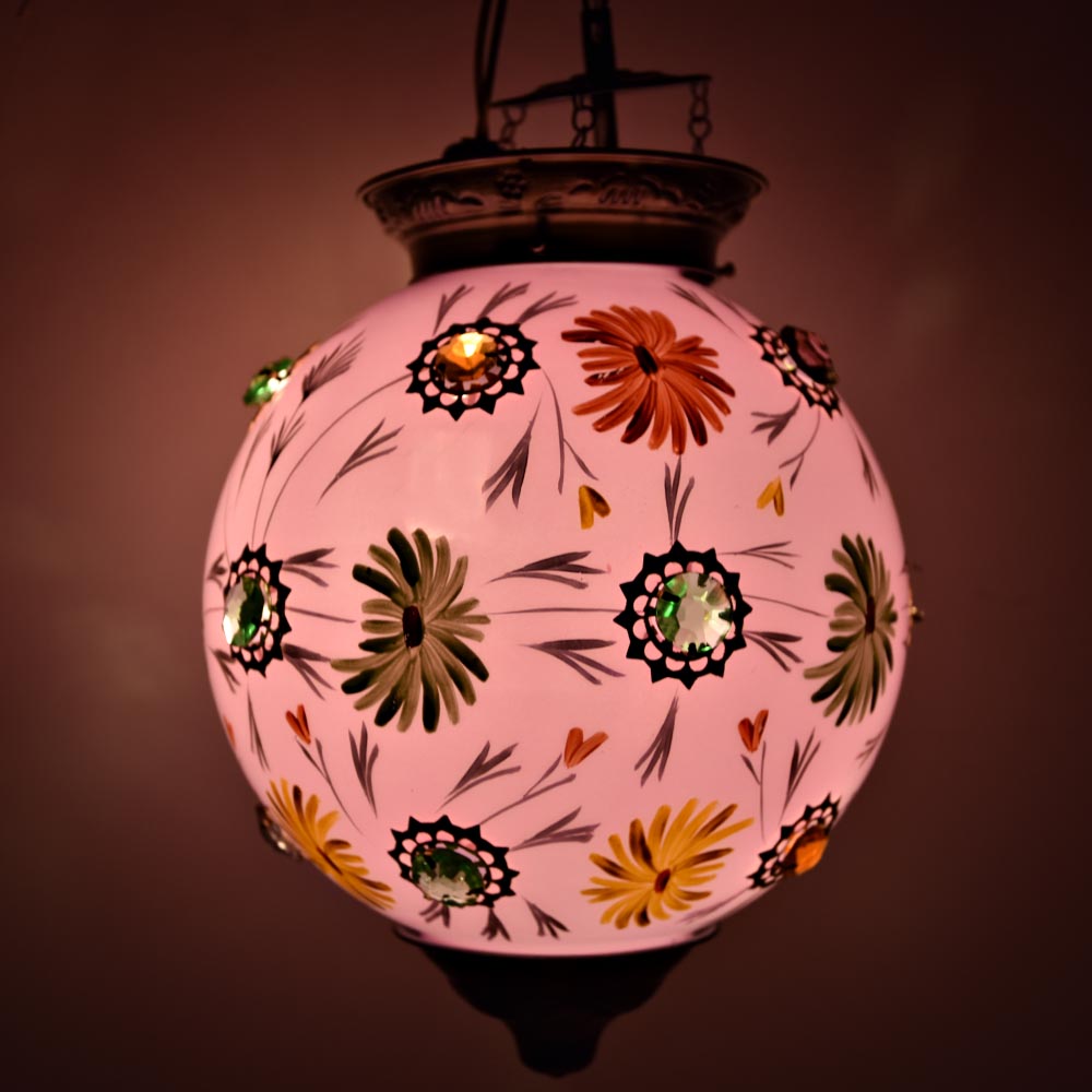 Prop it up With Pink Floral Patterned Glass Ceiling Lamp.