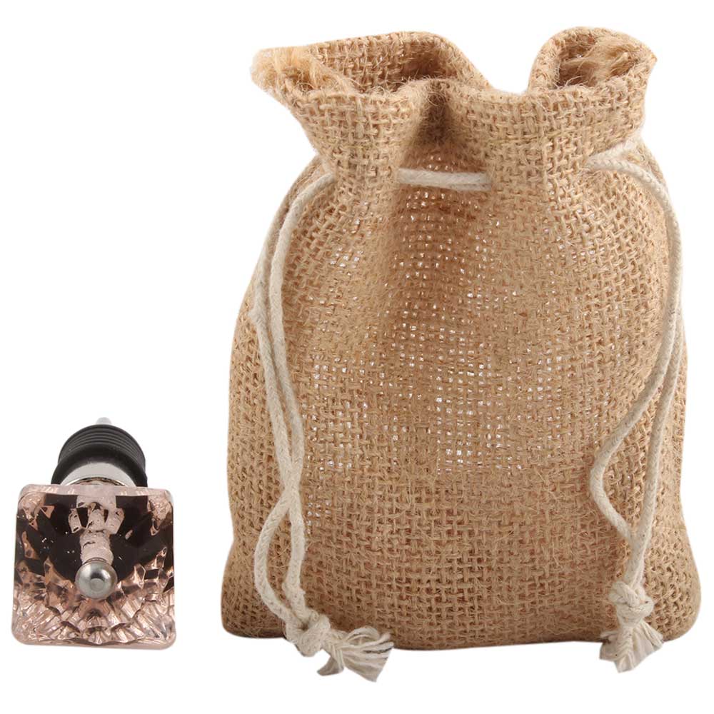 Pink Glass Square Cut Wine Stopper.zinc alloy wine bottle stopper with attractive Jute Bag Packaging.