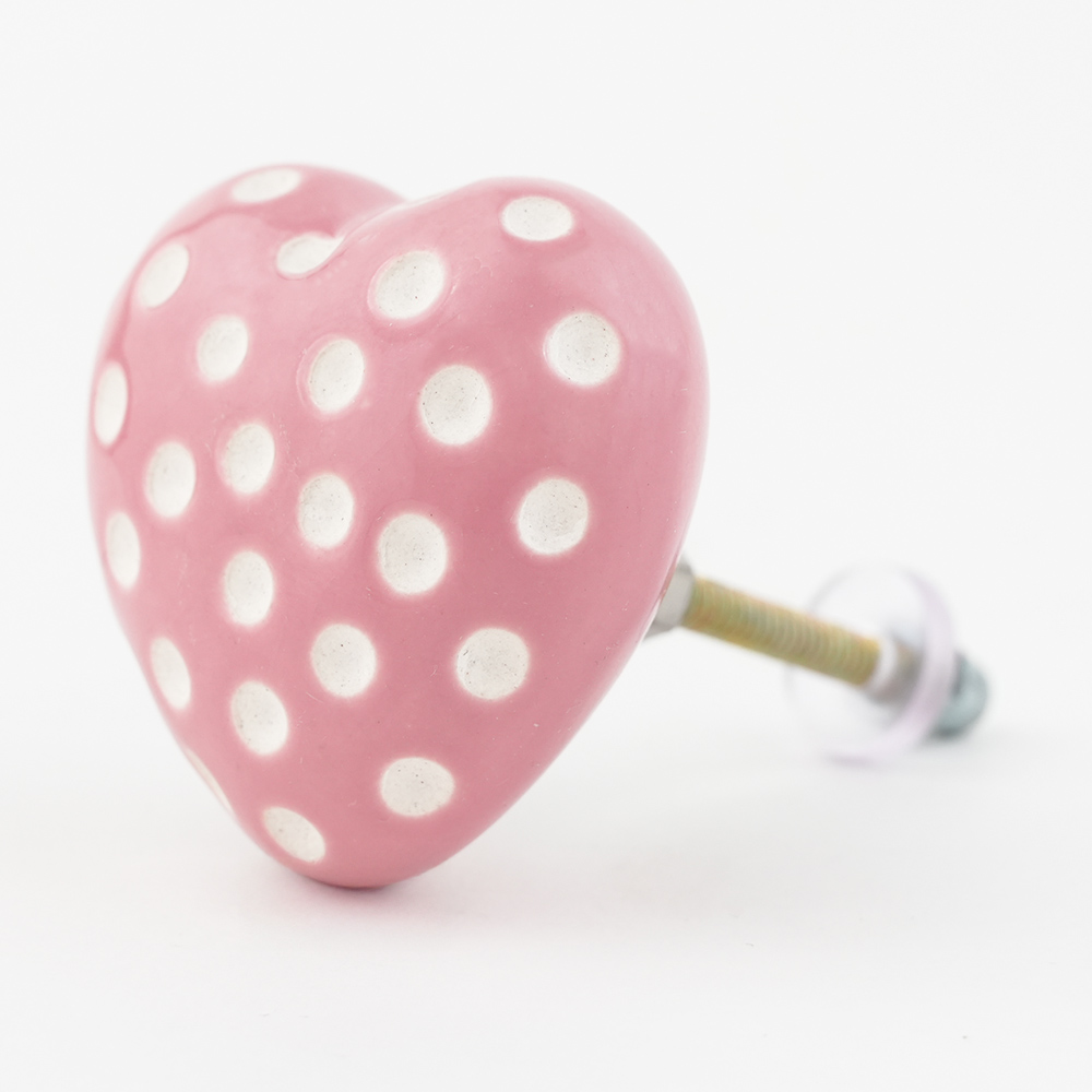 Pink Heart Etched Ceramic Drawer Knob