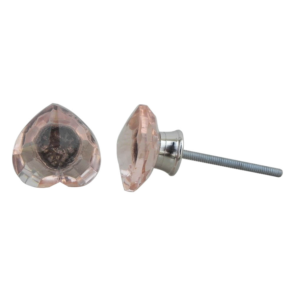 Pink Heart Glass Cabinet Knobs