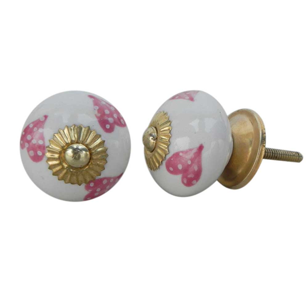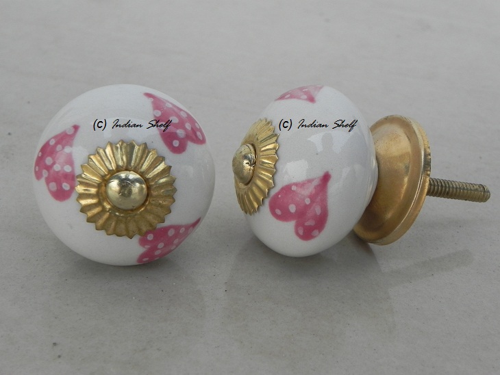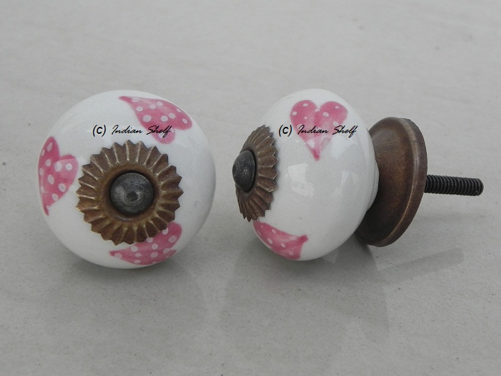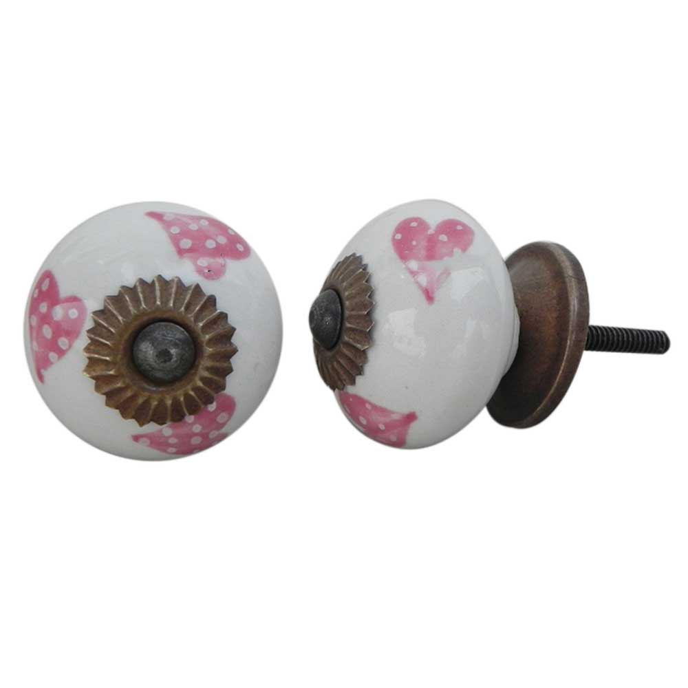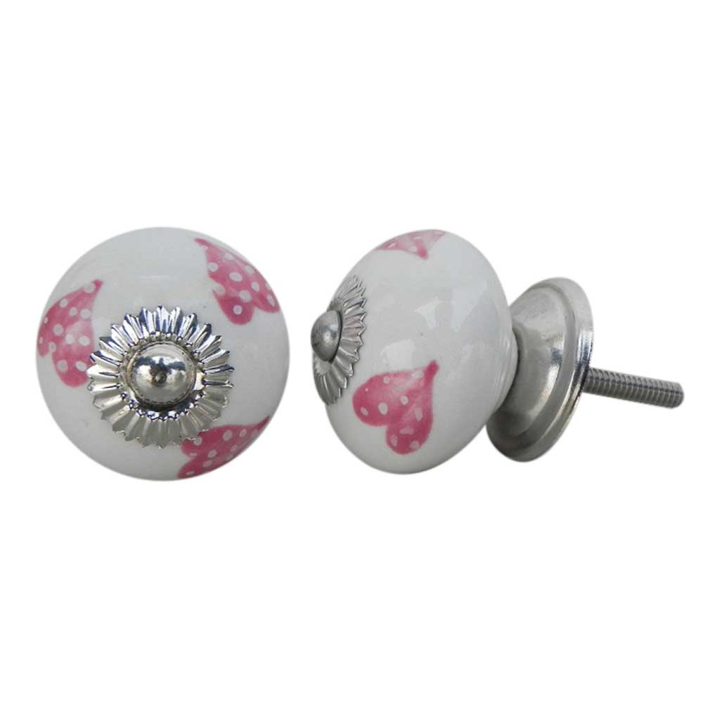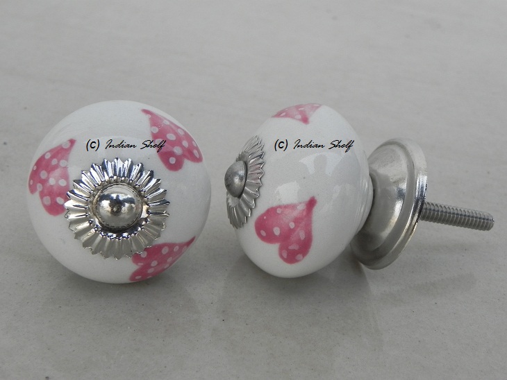 Pink Heart Ceramic knob. Ideal for kitchen cabinets, kitchen drawers, dining room, bed room, chest drawers, dressing tables, almirah