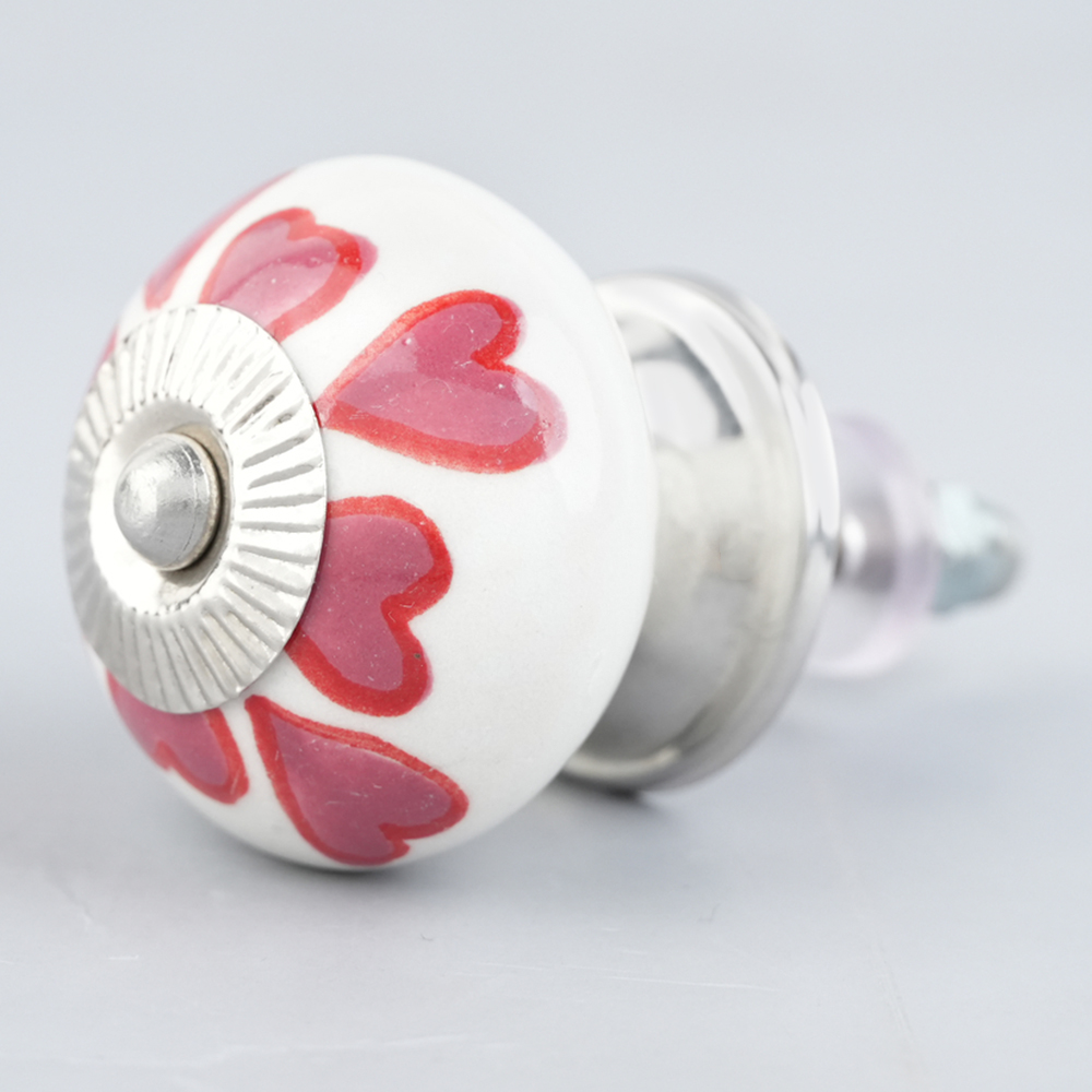 Pink Heart Ceramic knob. Ideal for kitchen cabinets, kitchen drawers, dining room, bed room, chest drawers, dressing tables, almirah