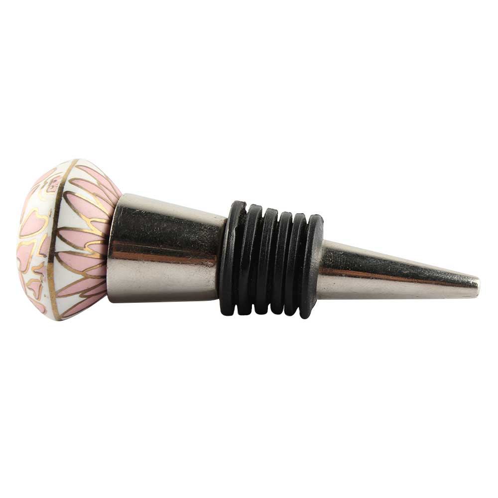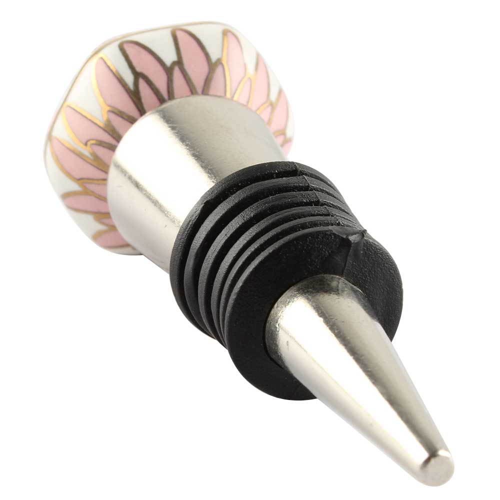 Pink Hexagon Small Ceramic Wine Stopper. Zinc Alloy Wine Bottle Stopper with Attractive Jute Bag Packaging.