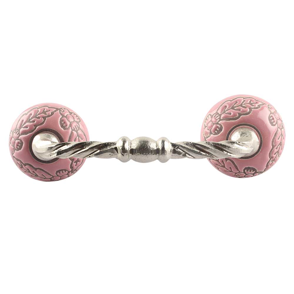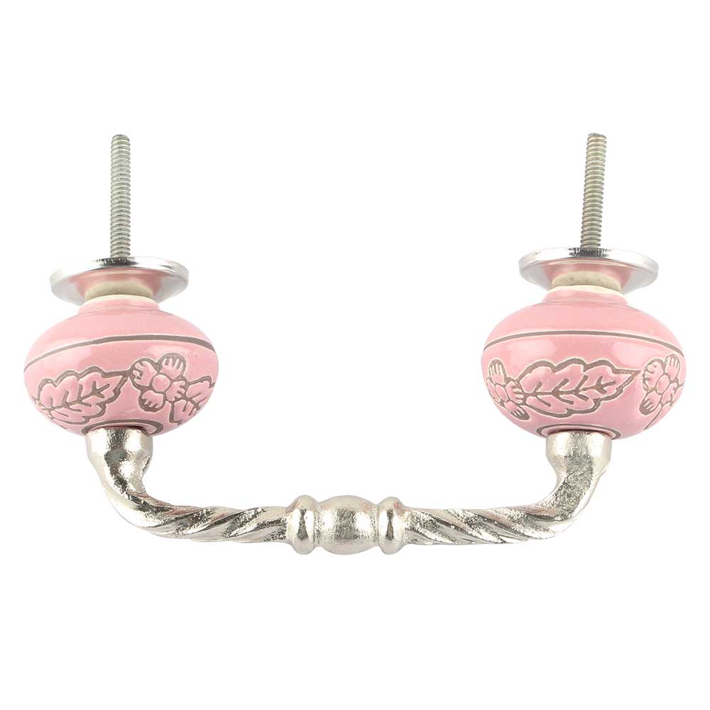 Pink Leaf Flower Etched Ceramic Cut Bridge Handle. Ideal for Drawer, Dresser, Cabinet, Wardrobe, Cupboard and Almirah etc.