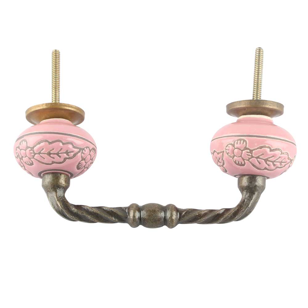 Pink Leaf Flower Etched Ceramic Cut Bridge Handle
