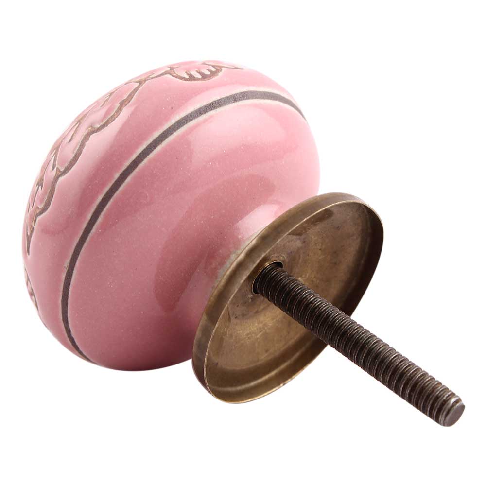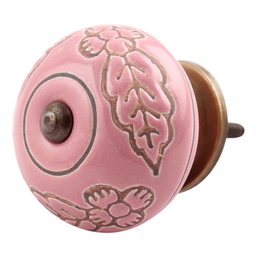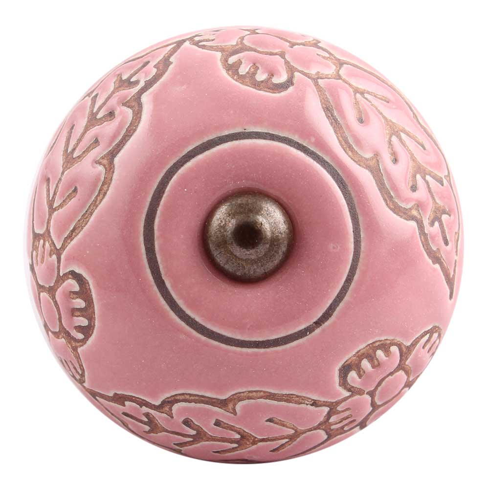 Pink Leaf Flower Etched Ceramic Drawer Knob