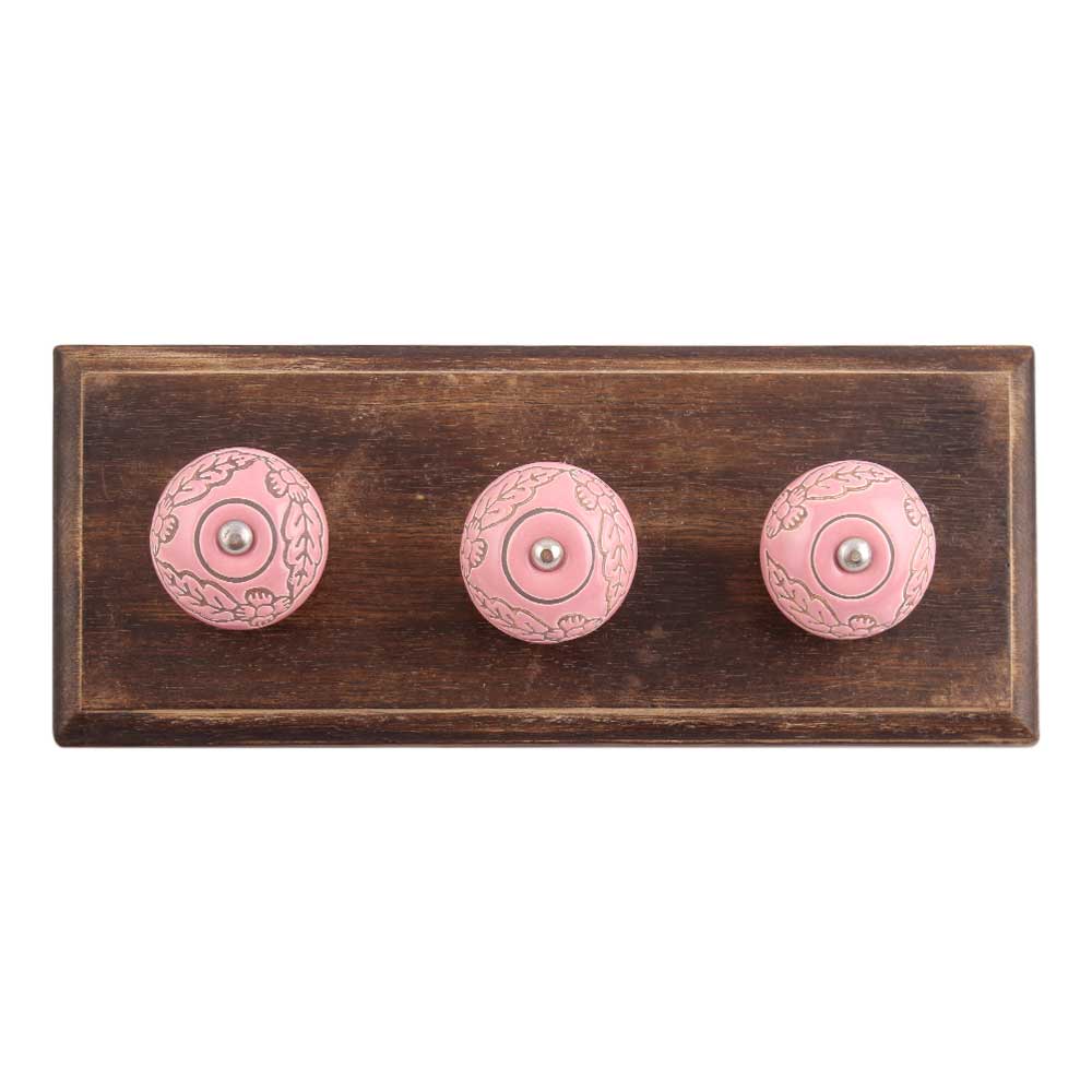 Pink Leaf Flower Etched Ceramic Wooden Hooks