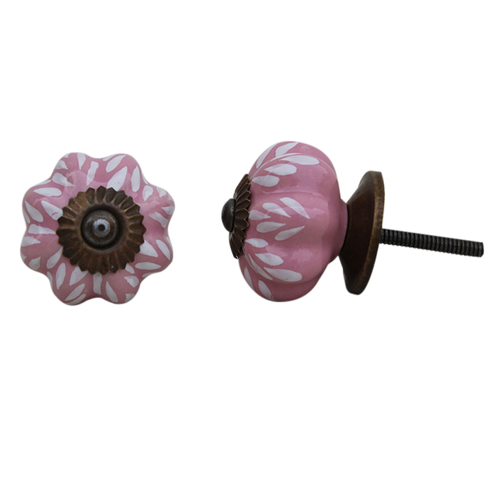 Pink Leaf Medium Ceramic Knob