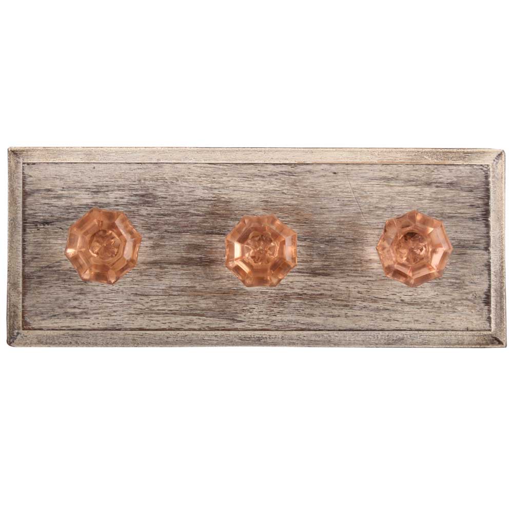 Pink Octagon Glass Shape Wooden Hooks