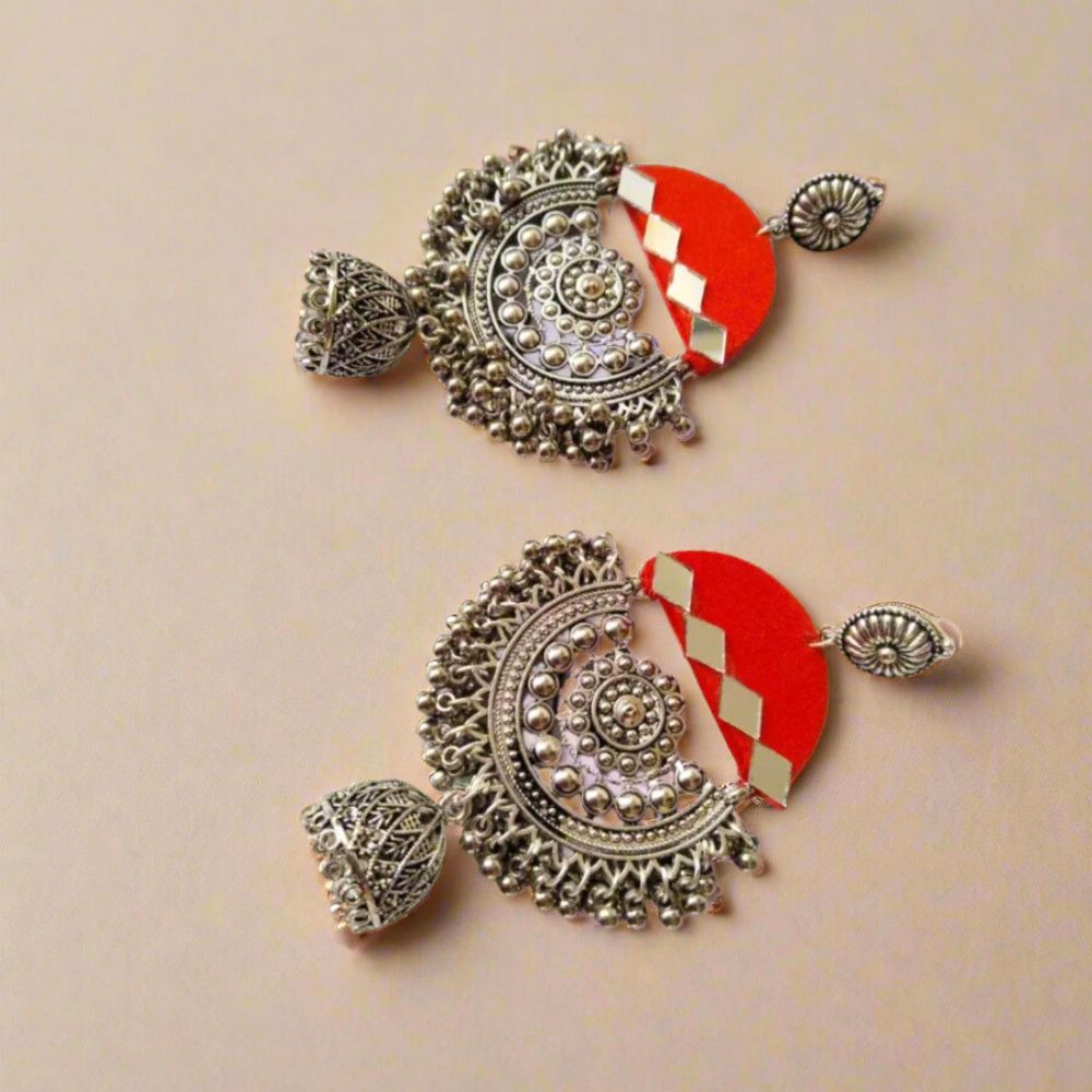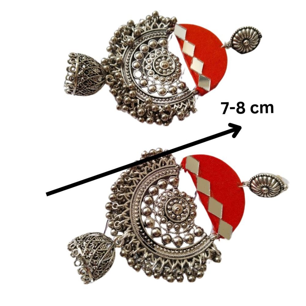 Pair these jhumkas with silk sarees, lehengas, or festive anarkalis, and store them in a dry, padded pouch to protect the oxidized finish and mirror work.