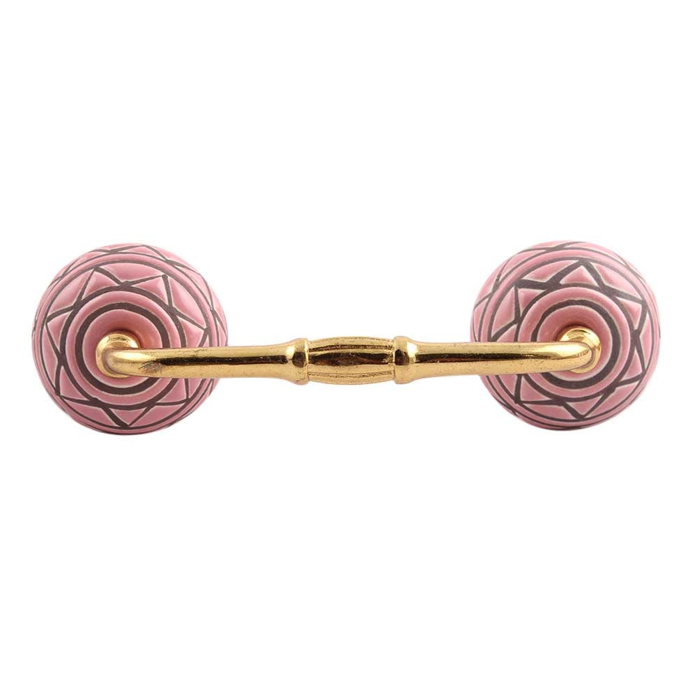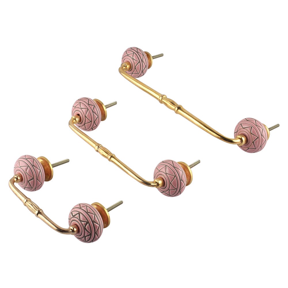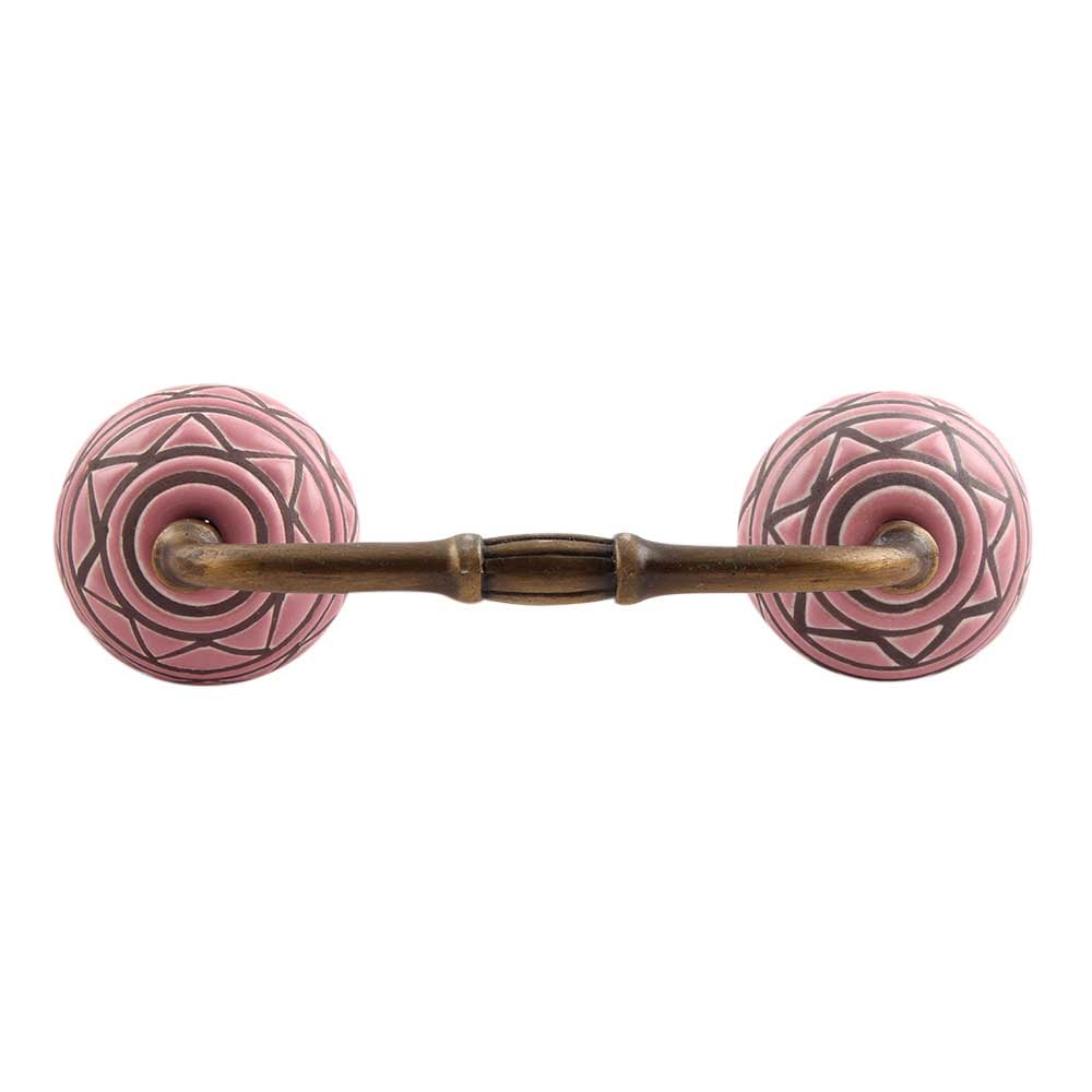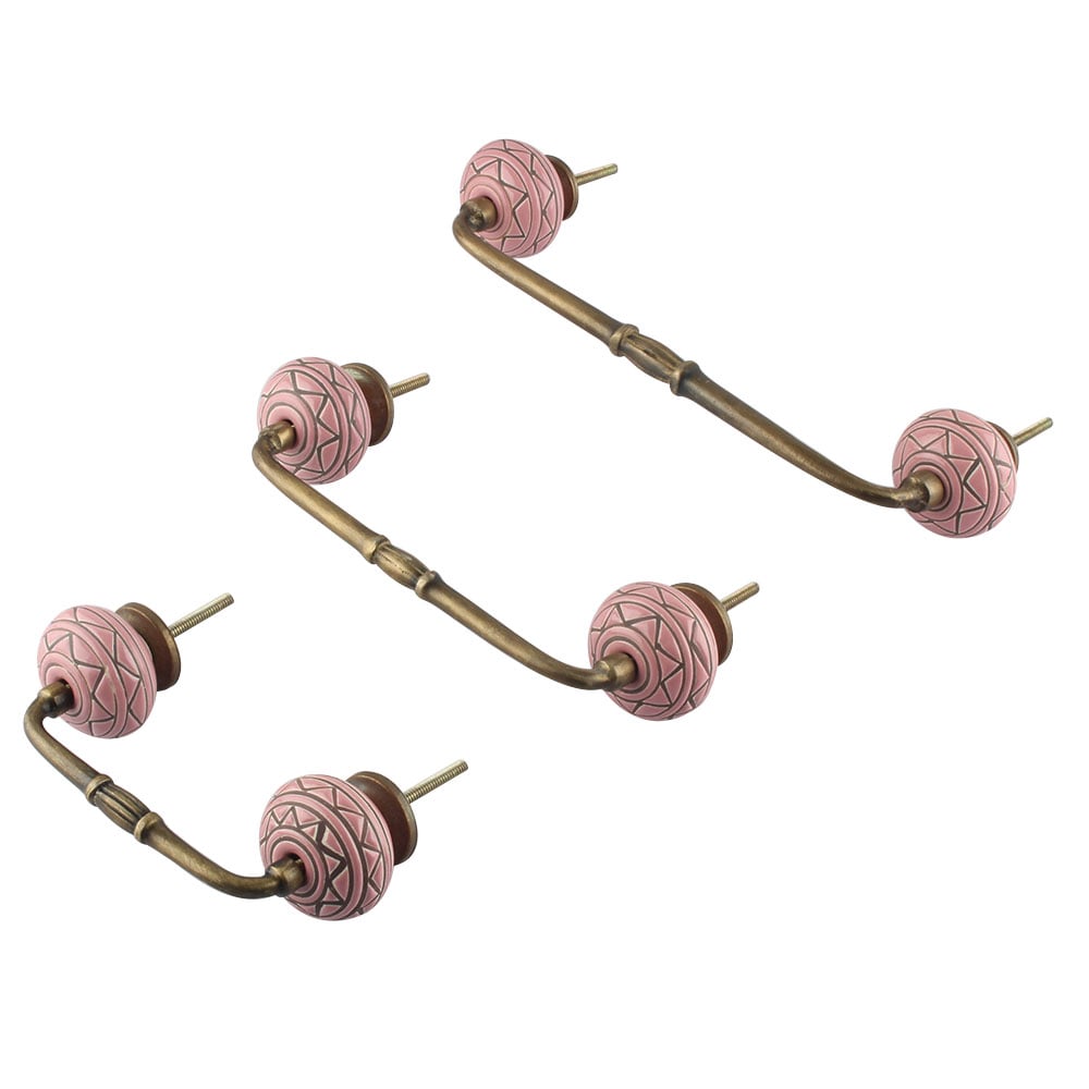 Pink Pattern Etched Ceramic Bridge Handle. Ideal for Drawer, Dresser, Cabinet, Wardrobe, Cupboard and Almirah.