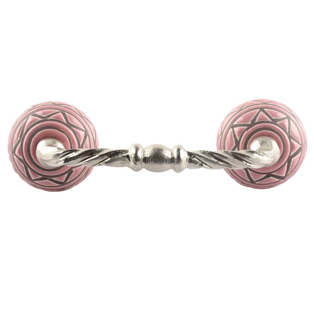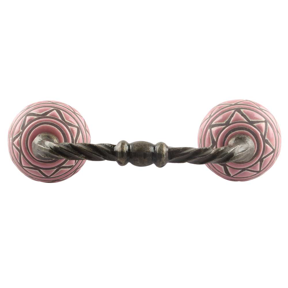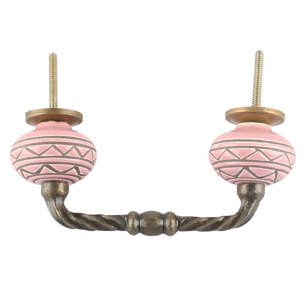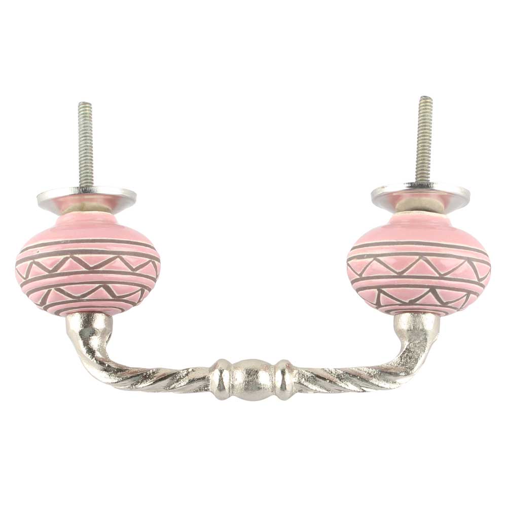 Pink Pattern Etched Ceramic Cut Bridge Handle. Ideal for Drawer, Dresser, Cabinet, Wardrobe, Cupboard and Almirah etc.