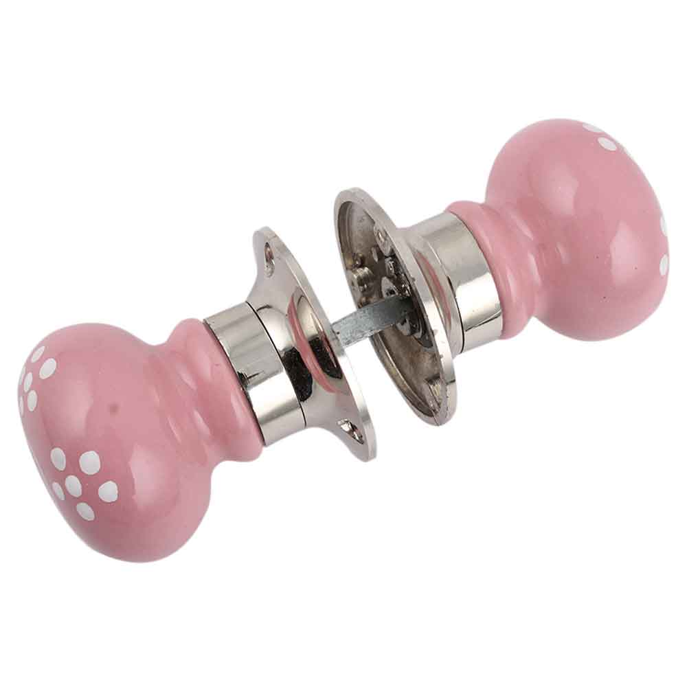 Pink Polka Dot Mortice Handle 2.25. Ideal for Drawer, Dresser, Cabinet, Wardrobe, Cupboard and Almirah.