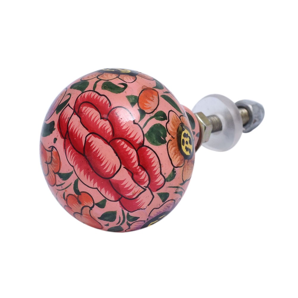 Each knob is individually hand-painted by skilled artisans, showcasing the delicate beauty of Kashmiri floral artistry. The soft pink hues of the roses, combined with intricate detailing, make these knobs a unique decorative feature for any room. This artistry adds a personal touch and ensures that every piece is one-of-a-kind.