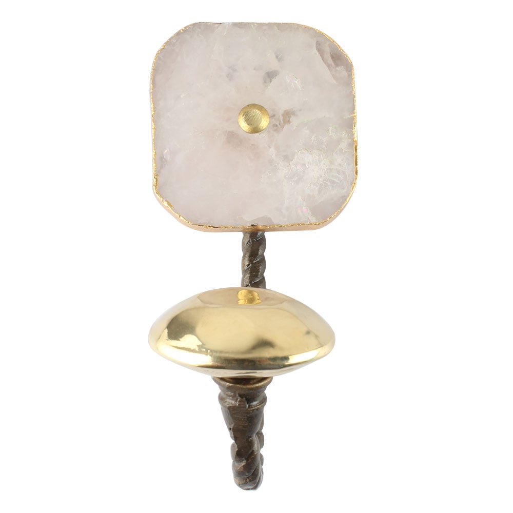 Quartz is a hard, resilient natural stone that won’t chip easily, and the solid brass base offers lasting support and resistance to corrosion.