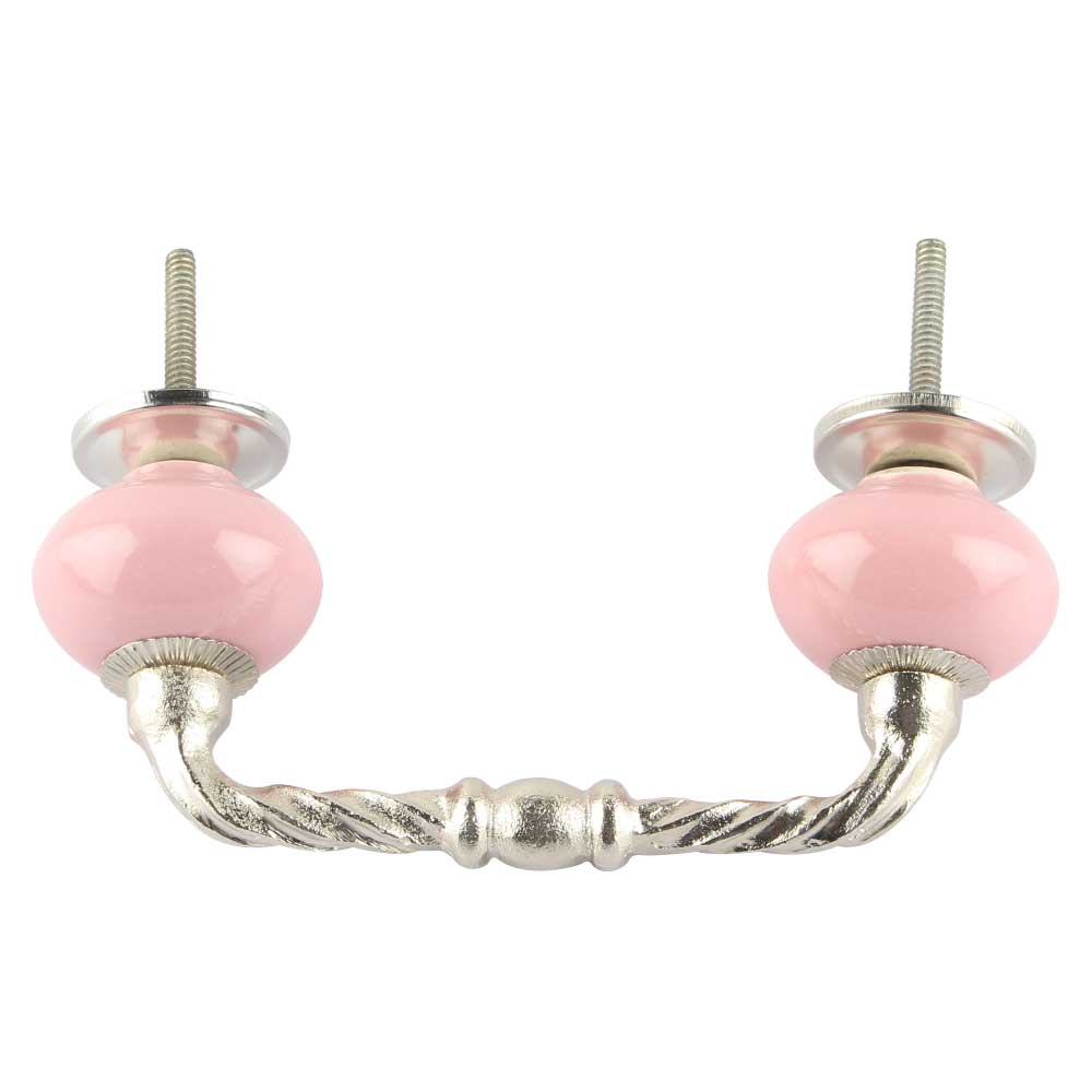 Pink Round Ceramic Cut Bridge Handles. Ideal for Drawer, Dresser, Cabinet, Wardrobe, Cupboard and Almirah etc.