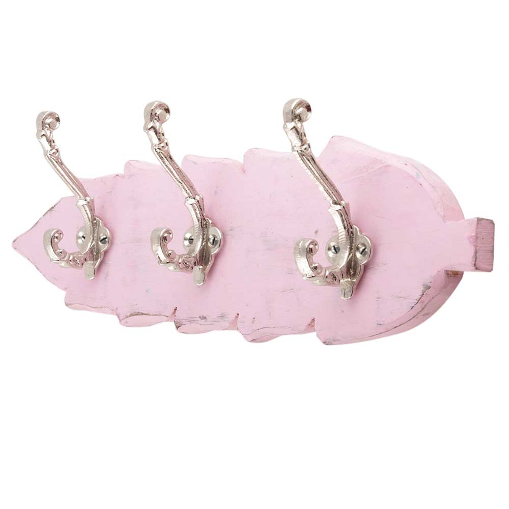 Pink And Silver Small Wall Wooden Iron Hooks. A Perfect Complement to the Soft Tone of the Wood are these White Traditional Hat & Coat Hook Made of Genuine Porcelain and Brass. It can be use to Hang Jewellery, Leashes, Towels, Scarves, Light Weight Sweaters, Caps Etc.