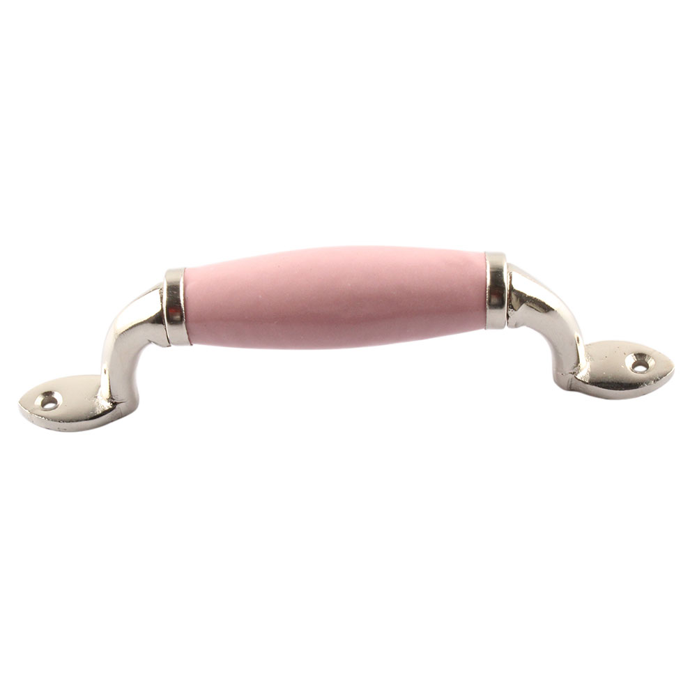 Pink Small Ceramic Silver Door Handles
