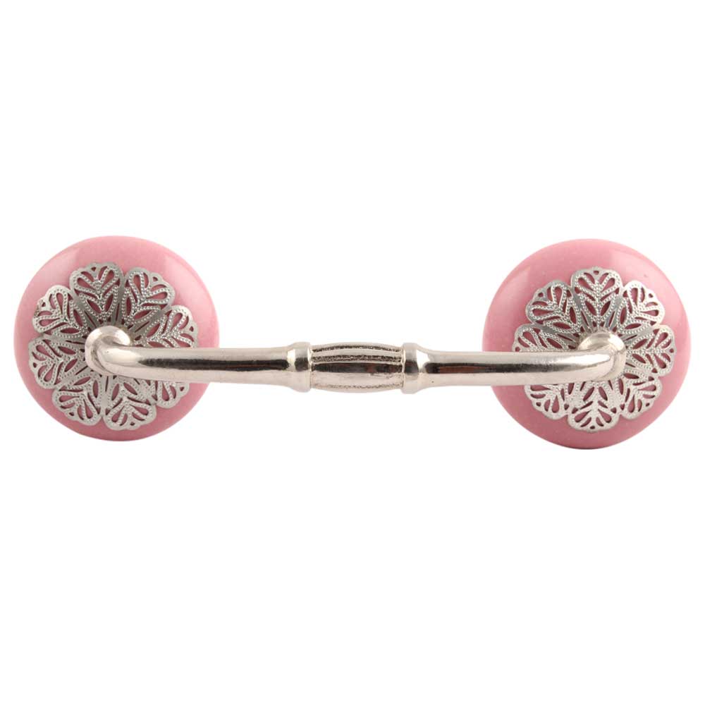 Pink Strewn Flat Ceramic Bridge Handle. Ideal for Drawer, Dresser, Cabinet, Wardrobe, Cupboard and Almirah.