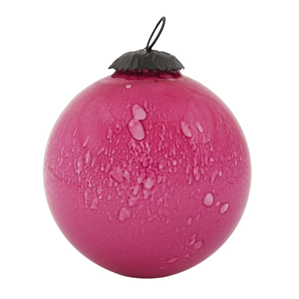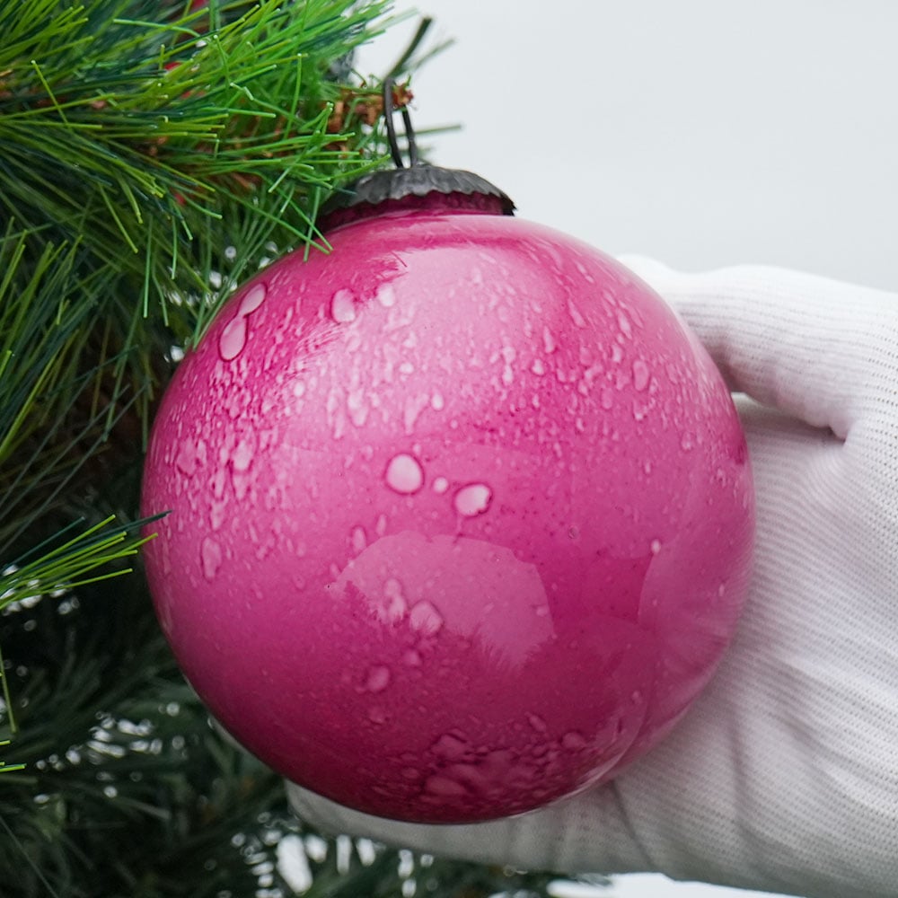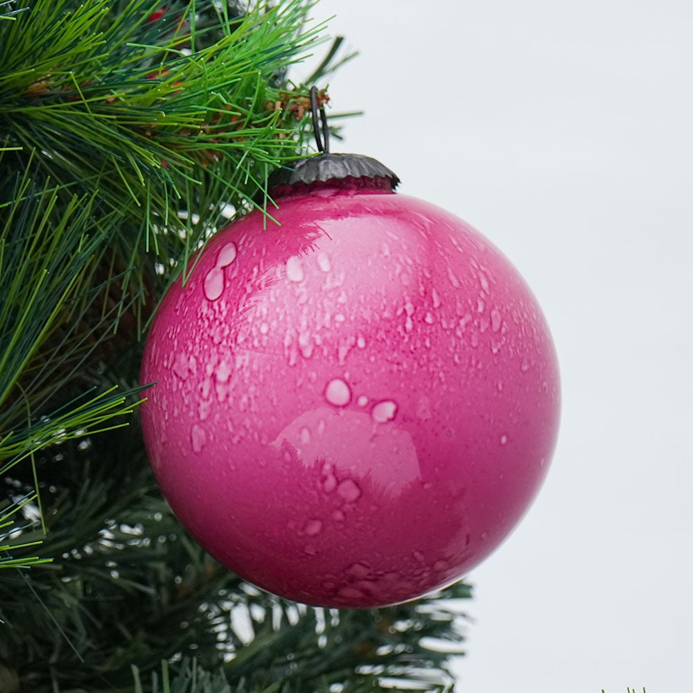 Pink Vintage Round Glass Christmas Ornament. Crafted from high-quality glass with a smooth glossy finish, this decorative bauble adds a classic and festive touch to Christmas trees, wreaths, and holiday displays.
