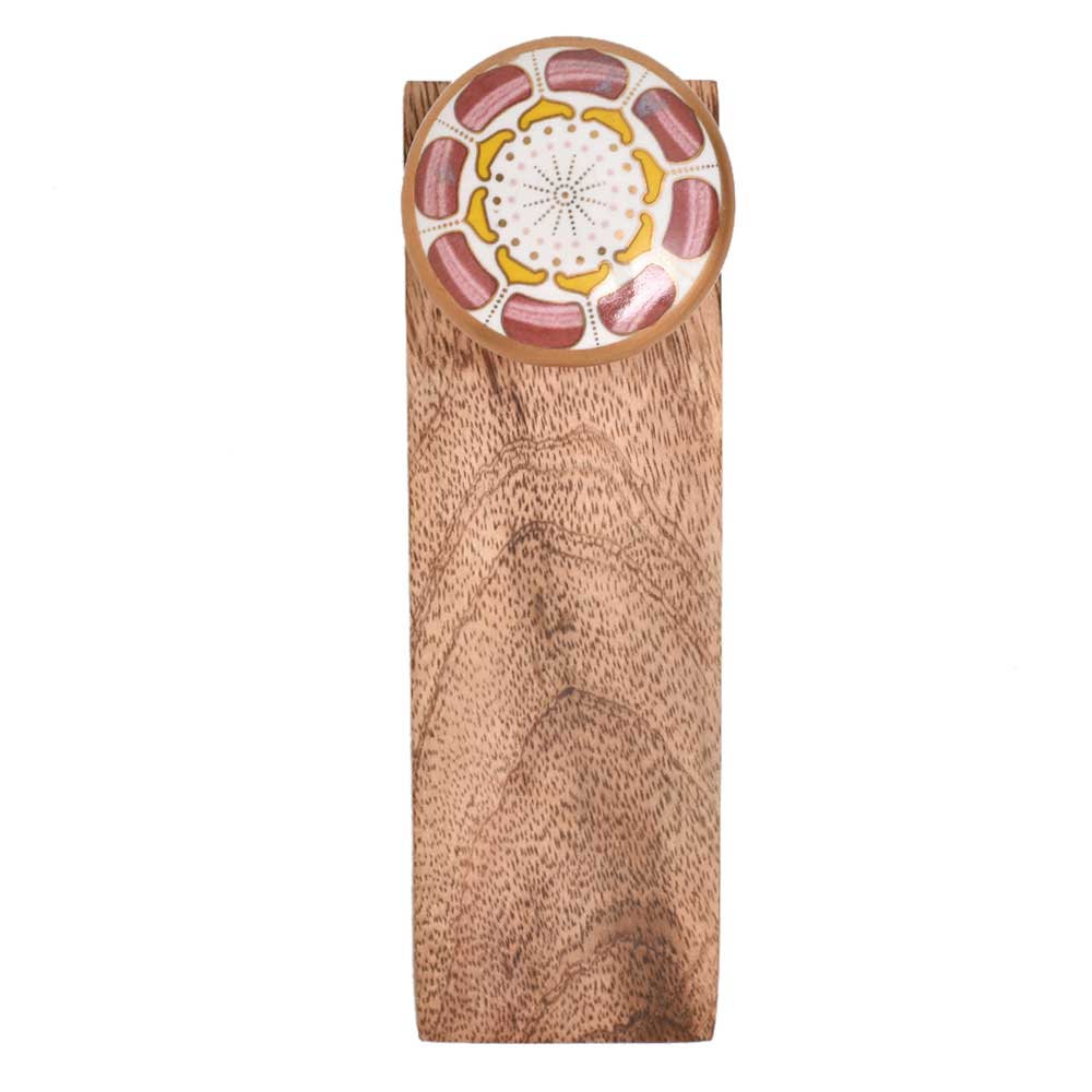 Handmade Ceramic Wooden Door Stopper.Wooden Door Stopper with a Ceramic Knob to Carry it Easily. This Wooden Door Stopper has Glue Dots under it to Ensure that it does not Slip. It is Handmade by the Craftsmen of India and this Innovative Door Stopper won't Disappoint You.