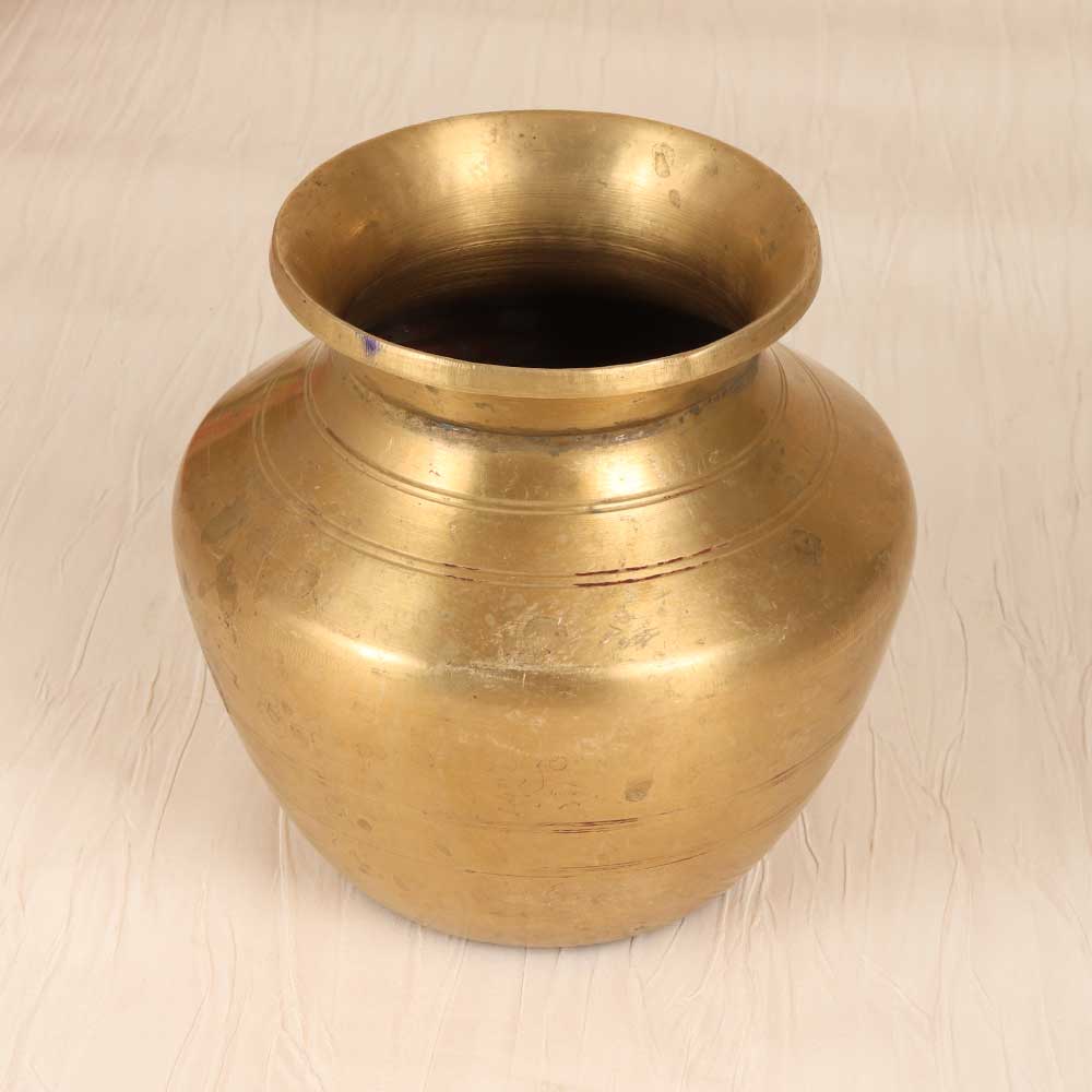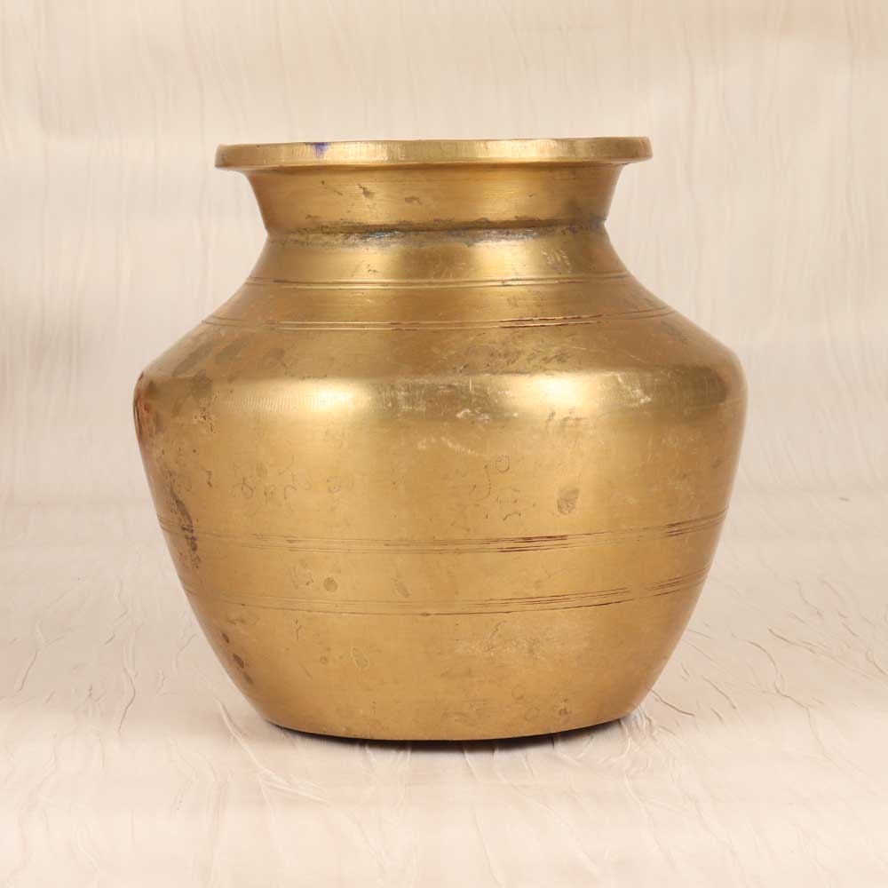 Transport yourself back to ancient times with this vintage brass holy water pot. Its intricately engraved patterns and timeworn patina add old-world charm to any home. This brass pot for holy water allows you to connect with cherished traditions in a modern way. Immerse yourself in spiritual rituals with this brass vessel for sacred water. Designed in an antique style, it brings an air of reverence and ceremony whenever you need to use holy water. Keep it in your puja room or prayer space for purifying your home and self. The vintage patina finish gives it a timeless, well-loved look. If you appreciate cultural traditions and meaningful keepsakes, this vintage Indian brass pot is for you. Use it to honor age-old customs in your own way. Its craftsmanship and spiritual symbolism make a special addition to your home.