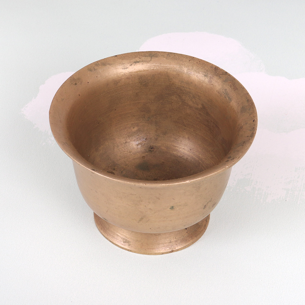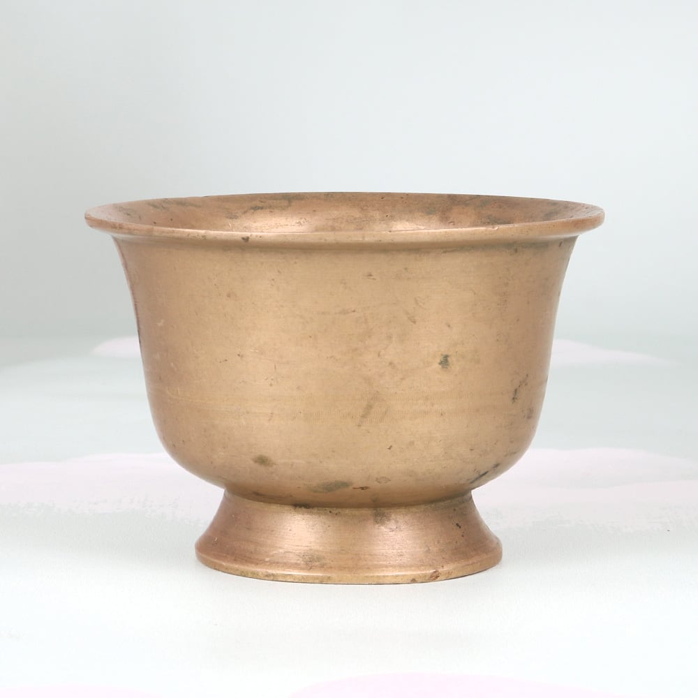Bring the timeless elegance of India's spiritual traditions into your home with this exquisite Vintage Brass Kumkum Bowl. This stunning piece is more than just a functional vessel - it's a work of art that will elevate your daily prayer and meditation rituals. This Vintage Brass Kumkum Bowl is a must-have for the spiritually-inclined. Its simple, elegant design creates a calming, meditative ambiance that will enhance your daily puja. Fill it with kumkum, flowers, or other ritual items to cultivate a deeper connection to the divine. Whether placed on your prayer altar or used to hold offerings, this bowl will infuse your sacred space with timeless Indian tradition. Invest in a piece that will become a cherished heirloom, passed down through generations.