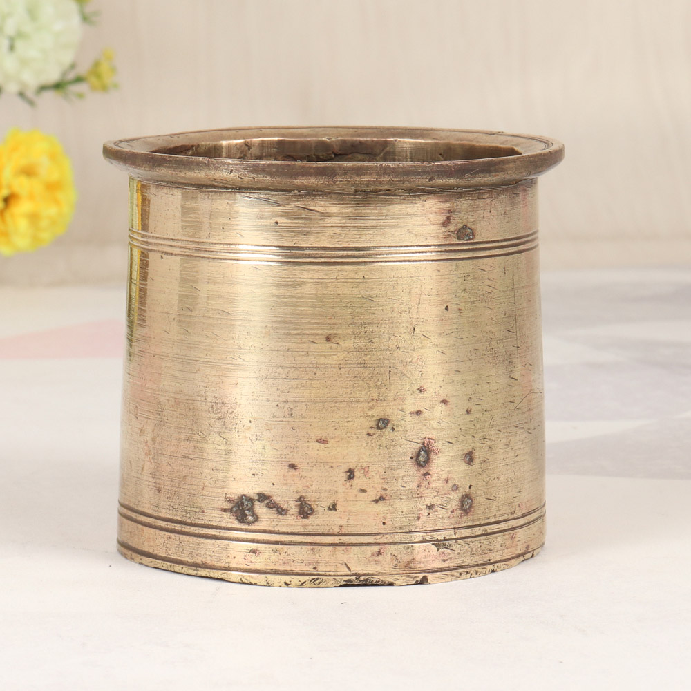 Unlock the captivating essence of ancient South Indian traditions with this exquisite brass Panchpatra pot. Crafted with meticulous attention to detail, this timeless vessel exudes a rustic charm that will transport you to the heart of sacred rituals. Elevate your spiritual practice with the captivating presence of this Panchpatra pot. Its rich history and authentic craftsmanship will imbue your rituals with a sense of reverence and connection to your cultural heritage. Whether you're a seasoned practitioner or seeking to deepen your spiritual journey, this versatile vessel will become an indispensable companion, guiding you through the sacred rites that nourish the soul. Embrace the timeless allure of South Indian art and let this Panchpatra pot become the centerpiece of your ritual space. Unlock the transformative power of your practice and embark on a journey of self-discovery and spiritual growth.