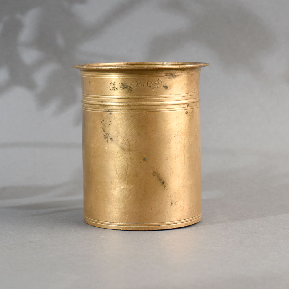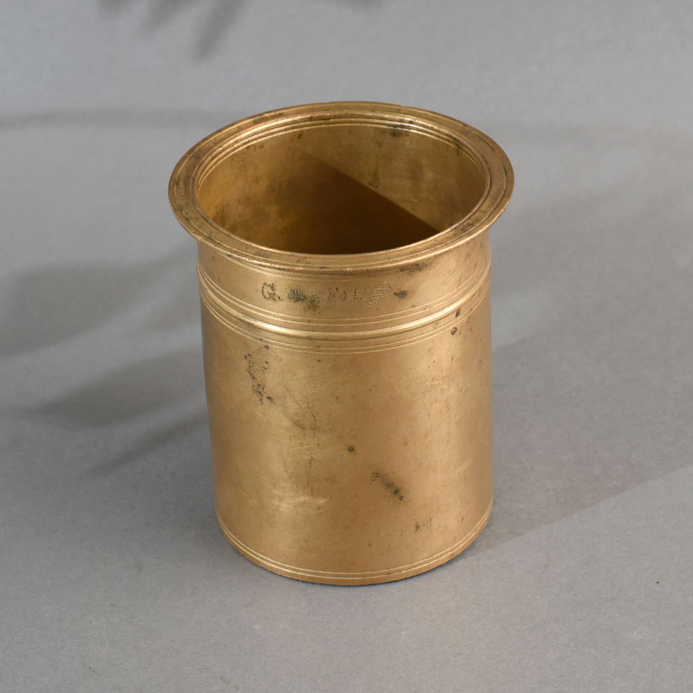 - Design: Cylindrical form with a flared rim and subtle double-line engravings.